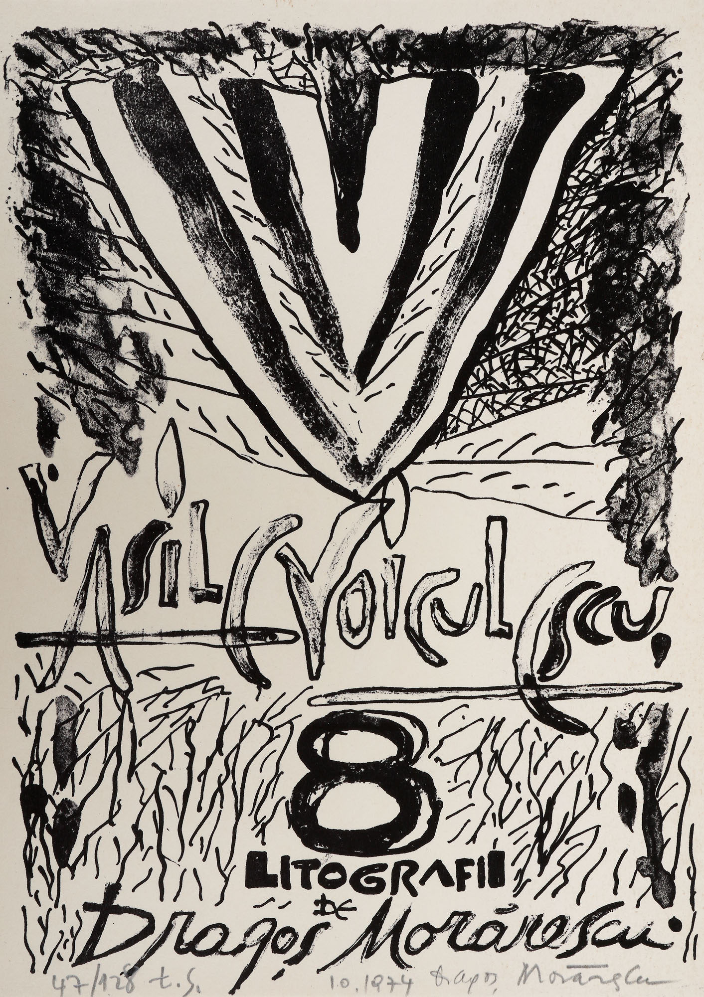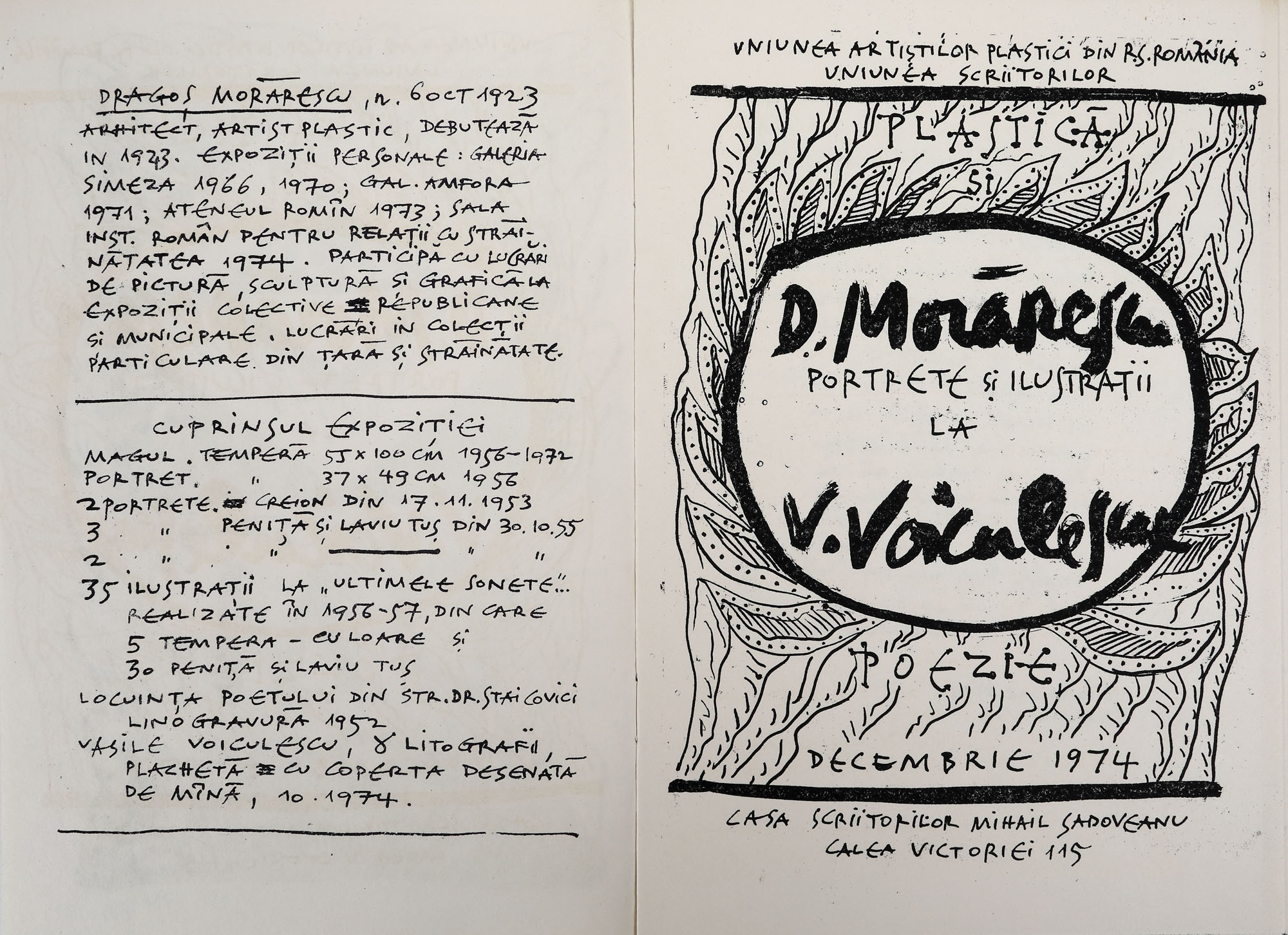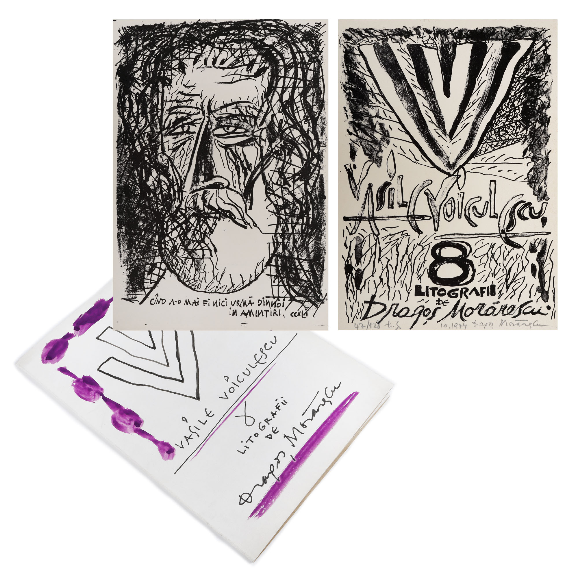 45. Mapă ”Vasile Voiculescu”, de Dragoș Morărescu, 1974, cu opt litografii