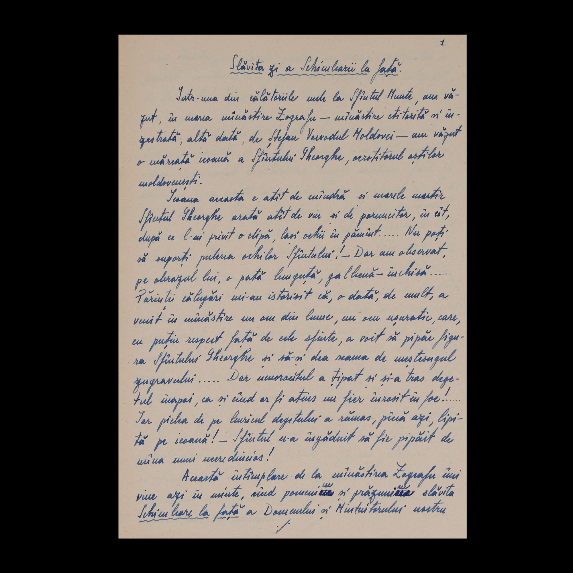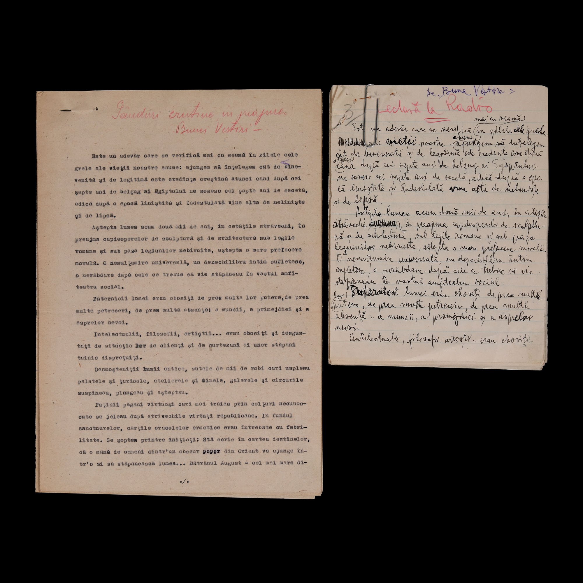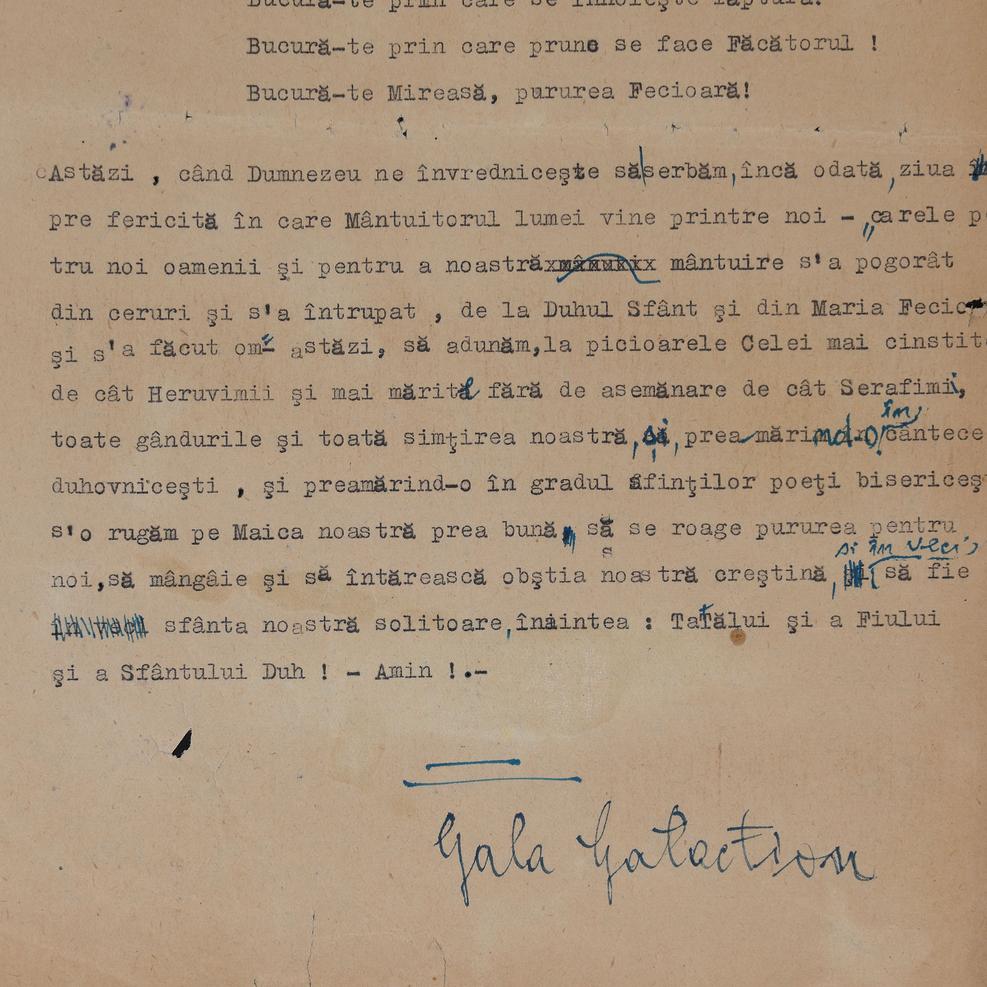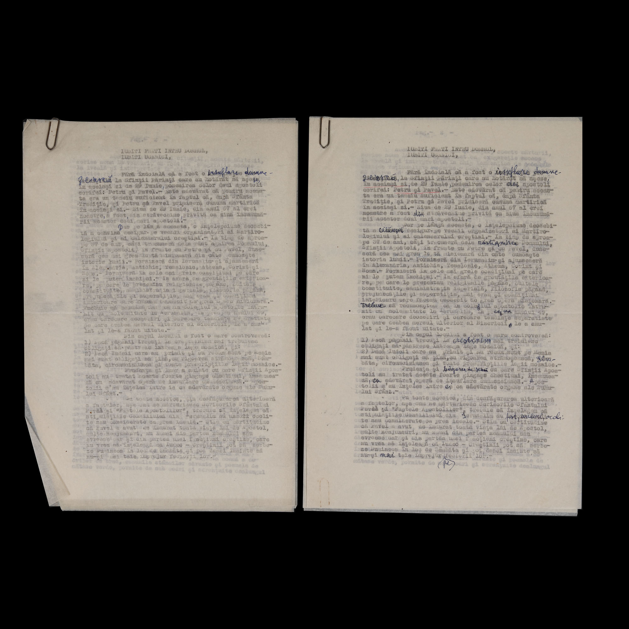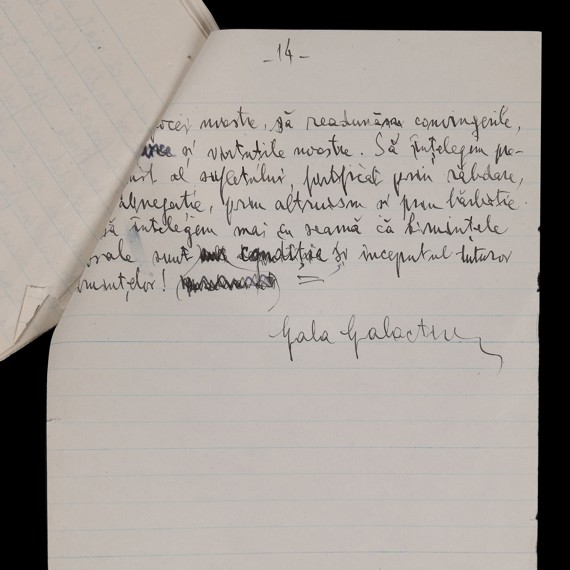 43. Predici ”Columne în naosul Bisericii Universale”, de Gala Galaction, 1941-1953, provine din colecția istorică Șerban Țuculescu-Maria Galaction (91 file)