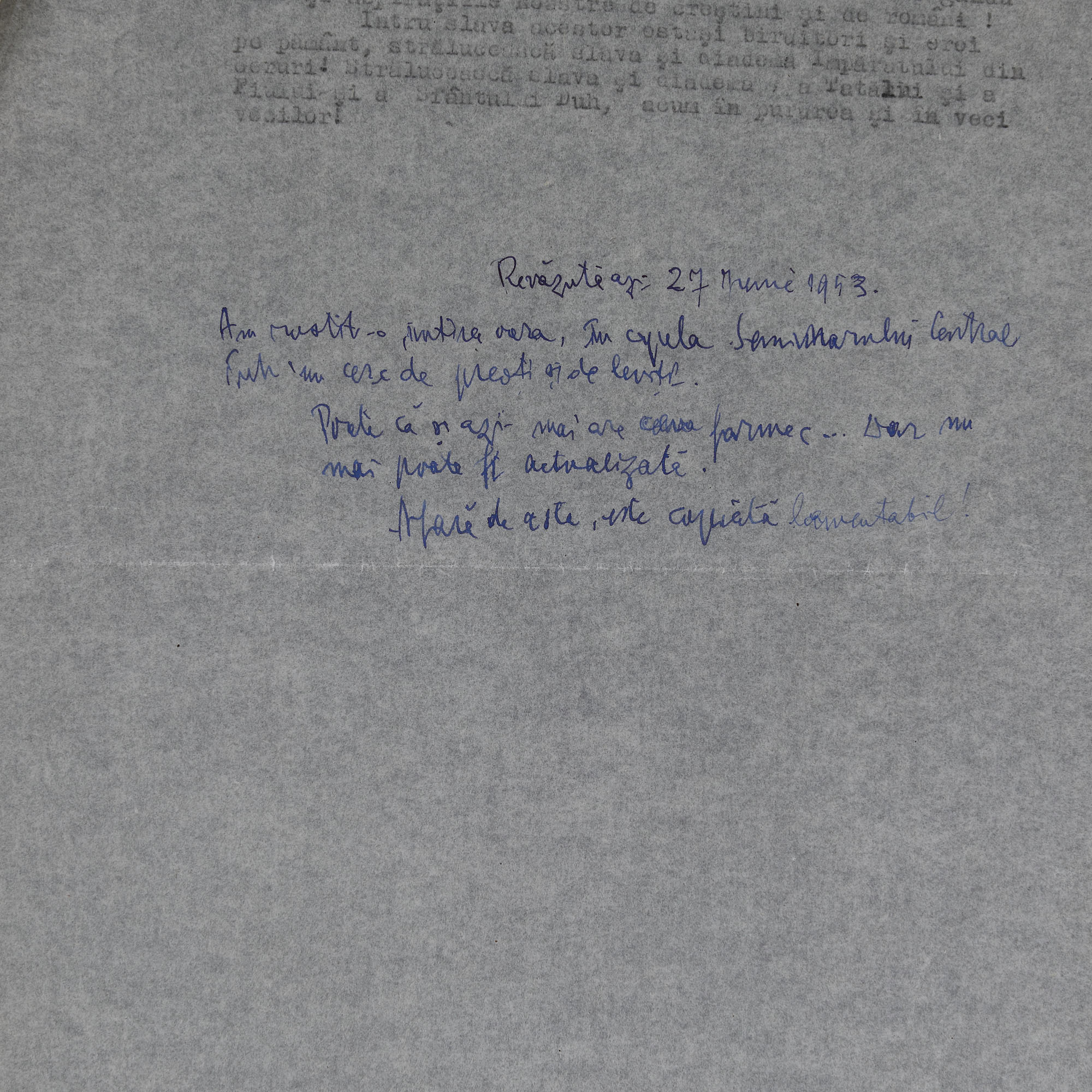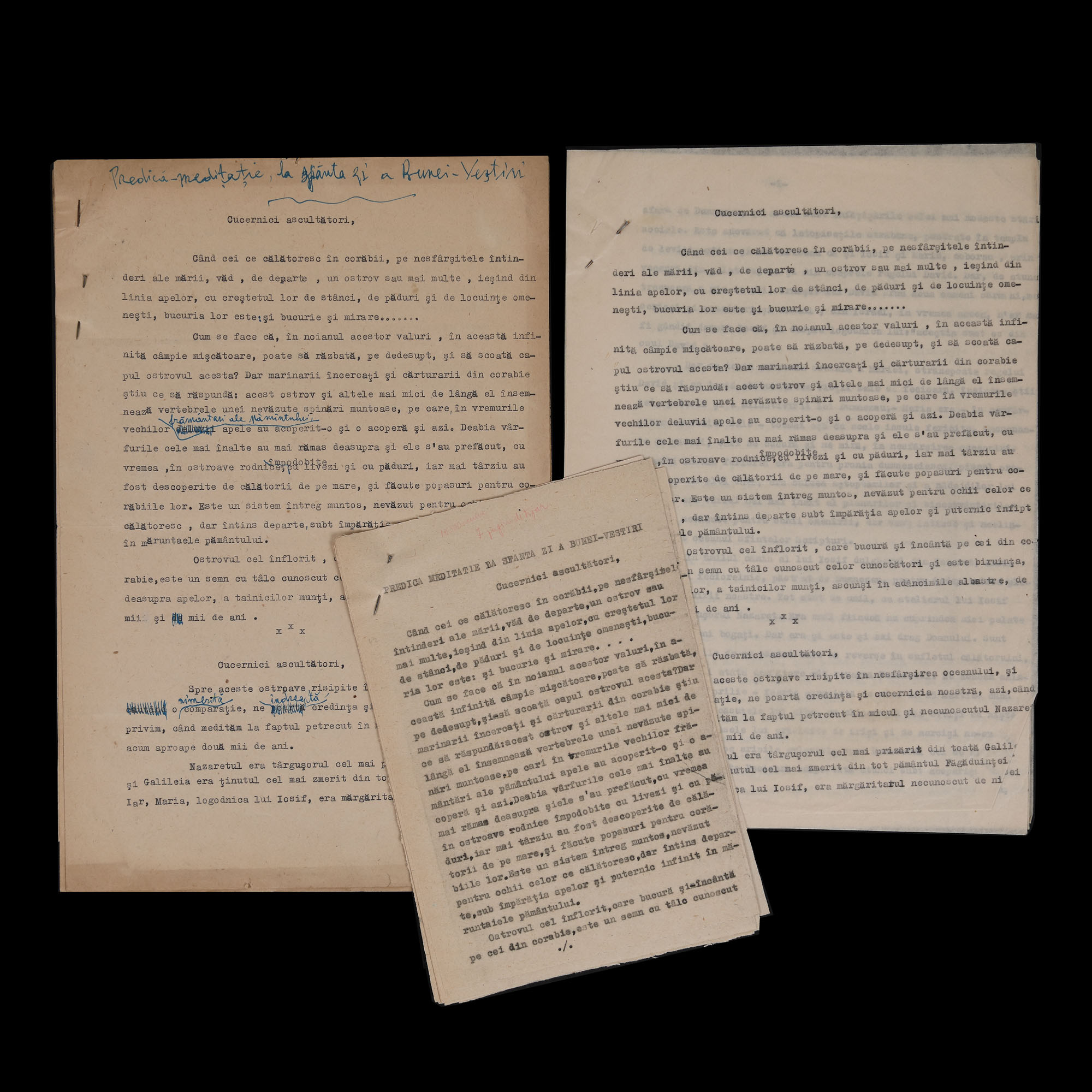 Lotul conține următoarele titluri: ”La Intrarea în Biserică” (14 file manuscris + 6 file), ”Gânduri creștine în preajma Bunei Vestiri” (15 file manuscris + 8 file), ”La pomenirea celor doi apostoli Petru și Pavel”, ”La sfânta zi a Bunei Vestiri”, ”Slavita zi a Schimbării la Față” (8 file manuscris) și ”În ziua de Sfânta Treime”.