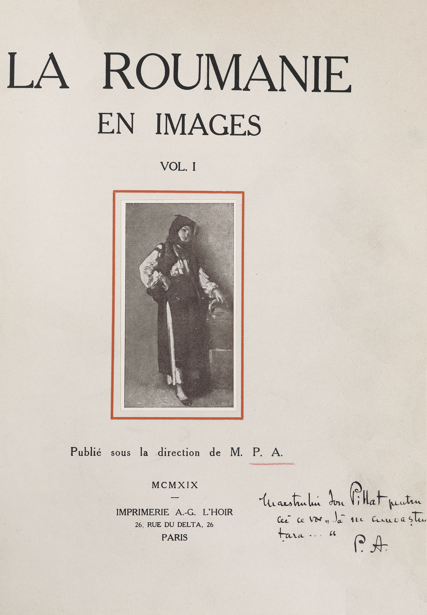 14. ”România în imagini”, de Petre Mihai Antonescu, primul volum, franceză, Paris, 1919, cu dedicația autorului către poetul Ion Pillat