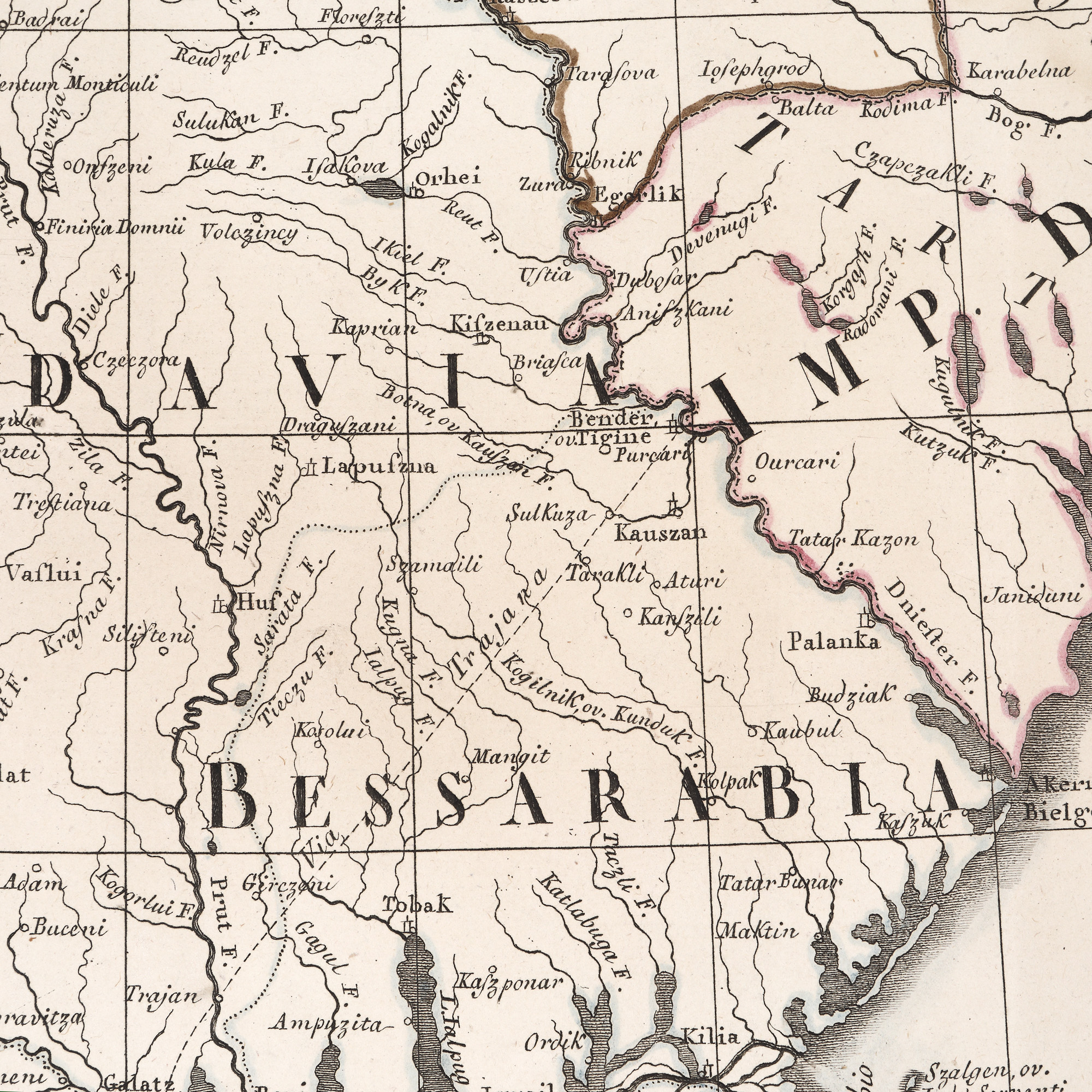 15. Hartă ”Basarabia și părți din Moldova și Valahia”, de Giovanni Maria Cassini, Roma, 1788