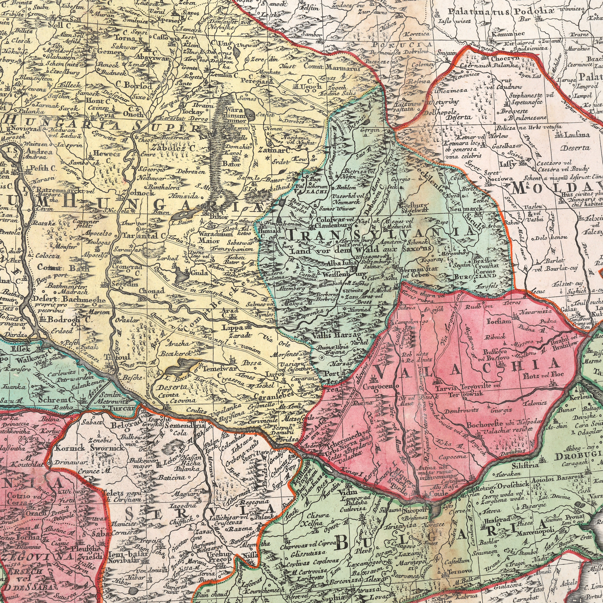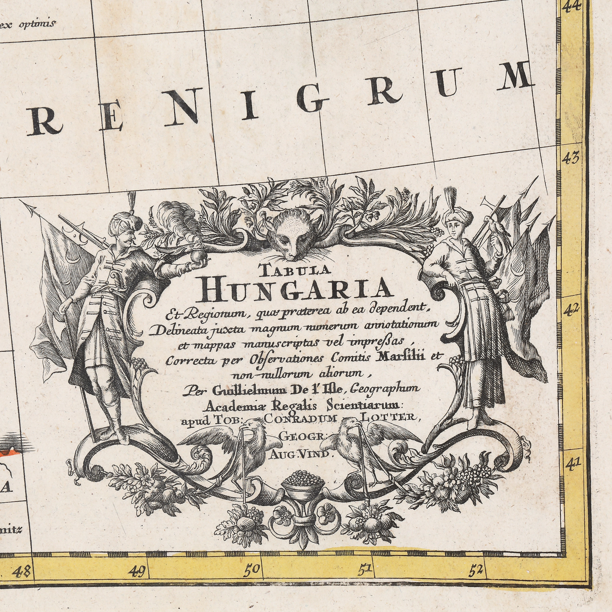 19. Hartă ”Ungaria și regiunile ei (Transilvania, Valahia, Moldova)”, de Lotter Tobias Conrad, Augsburg, 1762