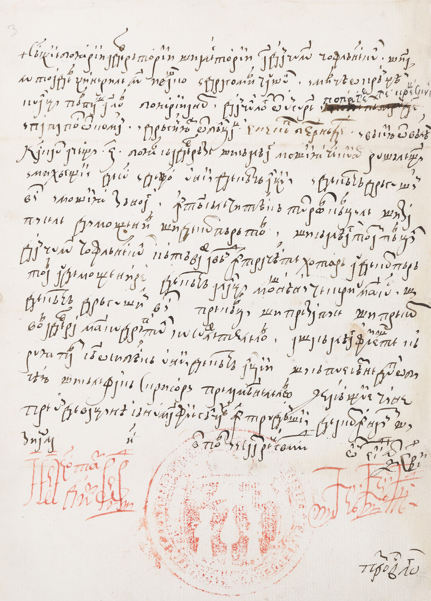 ”† Să să ştie boiarii adeverâtori şi alegătorii ai Danciului Cioflănescul şi ai lui Toader, ginerile lui Ivaşco, i Dragomir ceauşul i Mircea o(t) Crângéni cu alţi părtaşi ai lor, boiarii anume: Danciul logofăt ot Ungureni, popa Gherghe Creţescu i Papa postelnic ot Comani i Drăghici iuzbaşa ot Bălţăţi, Ene căpitan Berindei i Văsiiu ot Băléni, ca să caute aceşti 6 boiari să adeveréze şi să aleagă moşiia ce să chiiamă Ruşăteştii i Mihăeştii de Sus i de Jos, unii de cătră alţii i dă cătră Drăguşin vistier i moşiia Zănoaga. Întâi să le citească tuturor cărţile şi zapisele de moştenire şi de cumpărători şi să aleagă toate părţile Danciului Cioflănescul câtă va fi având într-acéste hotară, au de cumpărătoare au de moştenire, de cătră alalţi moşnéni ce scriu mai sus şi de cătră Drăguşin vistier pre cărţi şi pre zapise. Şi precum vor adevăra mai cu dreptul, cu sufletele lor, aşa să aleagă fieştecăruia parte, să-i osibească unii de cătră alţii şi să puie sémne după obicéiu şi să le facă scrisori pre la mâinéle lor, ca să să ştie cine pre unde va ţinea, să nu mai fie gâlceavă întru dânşii de acum înainte. Şi zioa la (…). Ispravnic (…) vtori portar. I ispravnik, saam reçe gospodstva mi. Octomvrie 15 dni, leat 7212 (1703). † î› K›standin v›ev›dß, milostïü BoÈïü gospodinß. Procit vel logofăt (m.p.)” Documentul hotărăște și adeverește, în baza unor cărți și zapise de moștenire și cumpărătură, stăpânirea lui Danciul Cioflănescul asupra unor părți de moșie din satele Ruşăteştii și Mihăeştii de Sus și de Jos și Zănoaga. Conține intitulația domnească în chinovar. De asemenea, conține sigiliul mijlociu al cancelariei, în chinovar, redactat în limba română, cu alfabet chirilic și slavonă, pe o filă de hârtie in-folio, fără filigran.