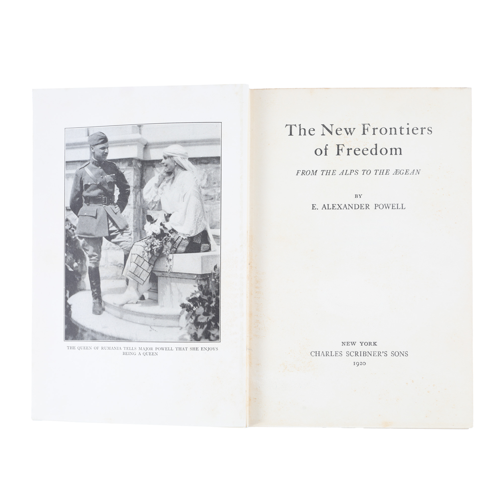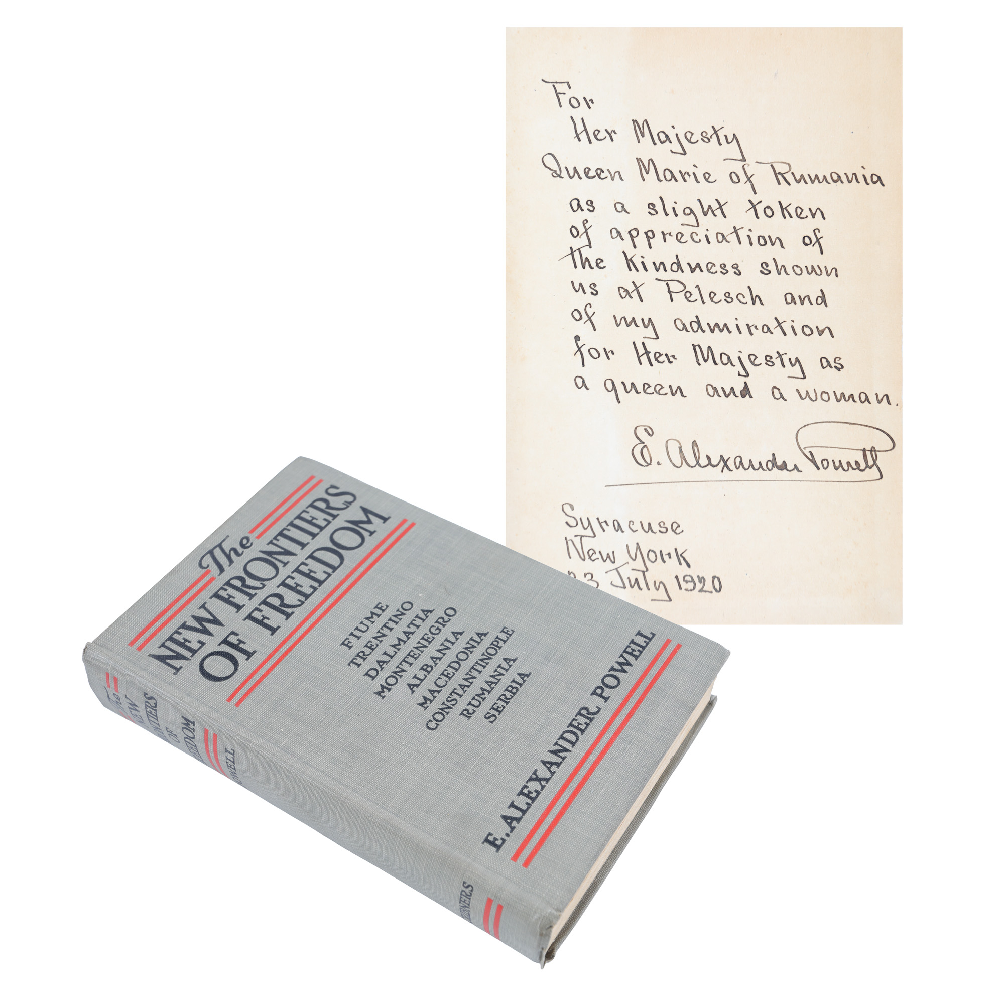40. ”Noile frontiere ale libertății”, de Edward Alexander Powell, engleză, New York, 1920, cu dedicația autorului către Regina Maria
