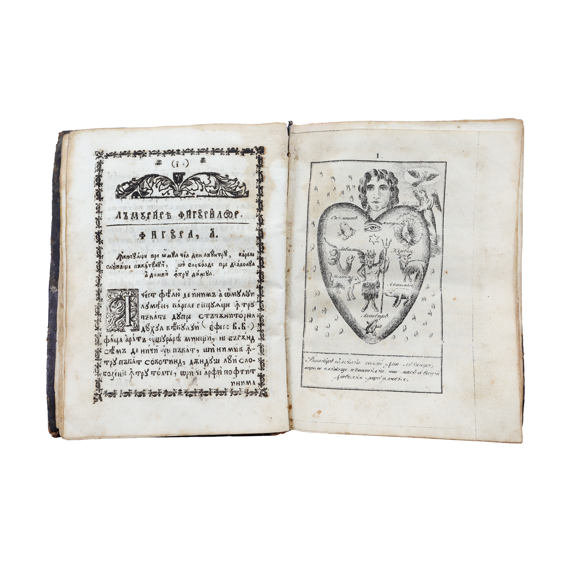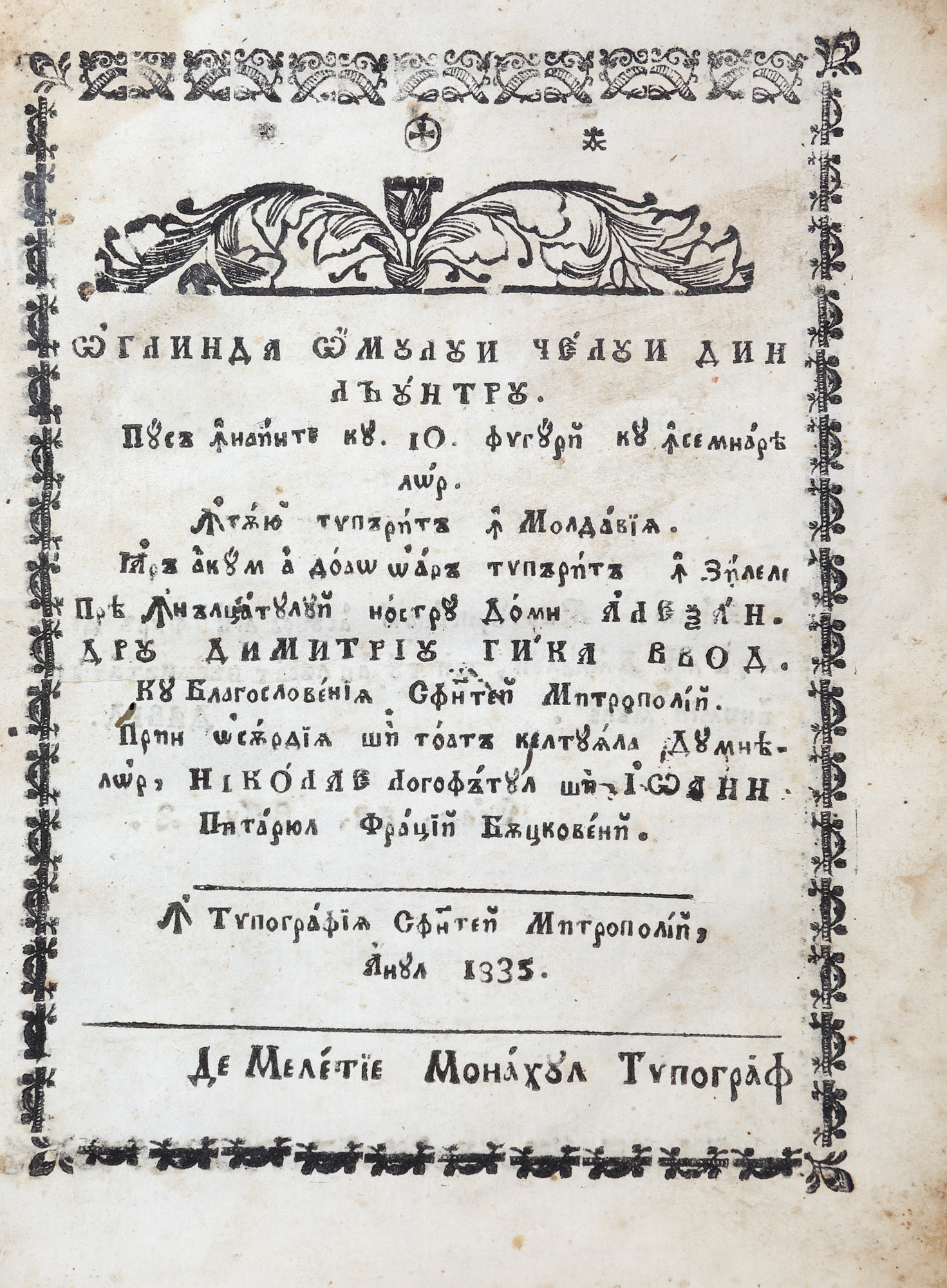 17. ”Oglinda omului celui din lăuntru”, prima ediție, tipărită în vremea lui Alexandru Dimitrie Ghica, Iași, 1835, piesă rară, cu zece gravuri