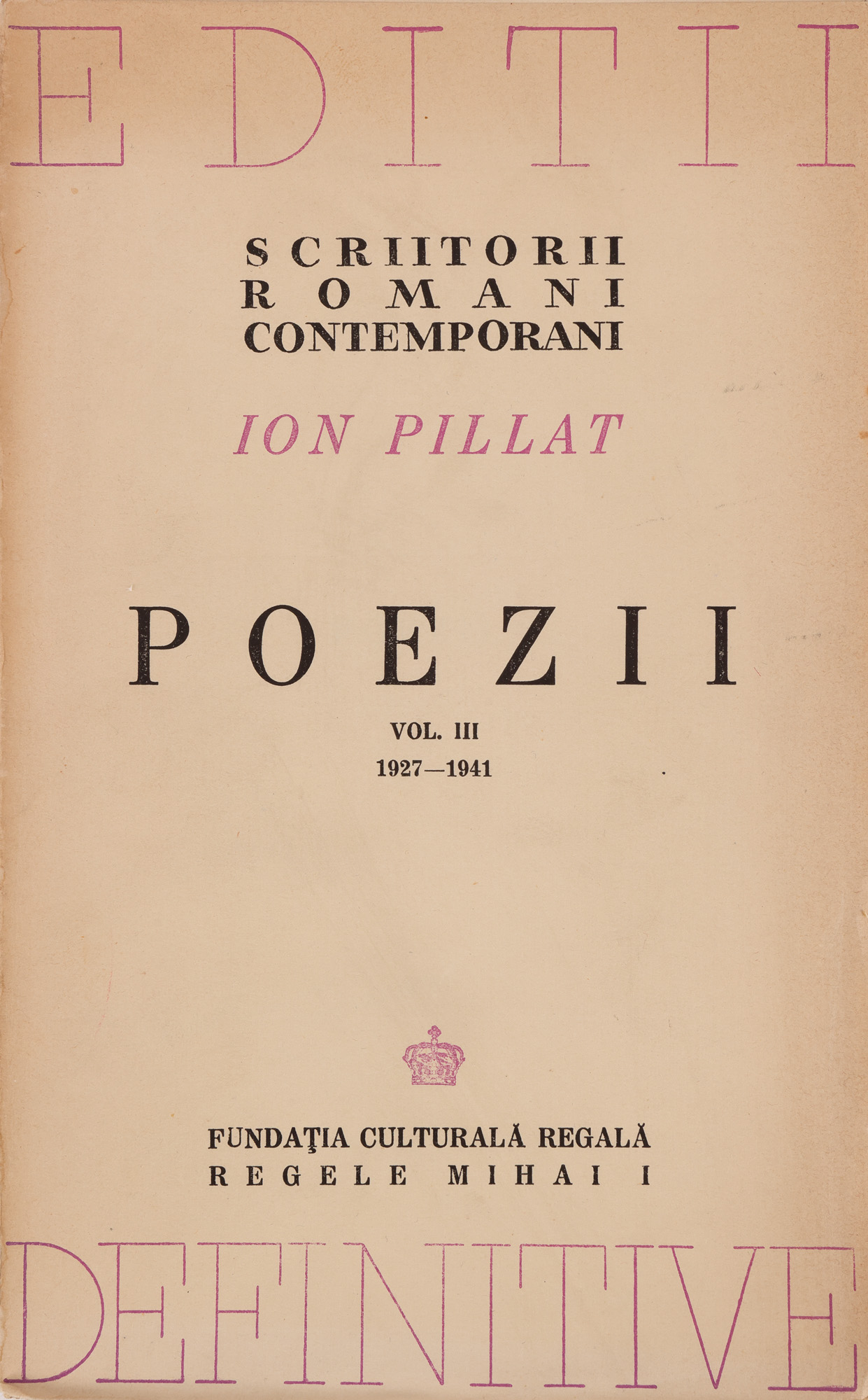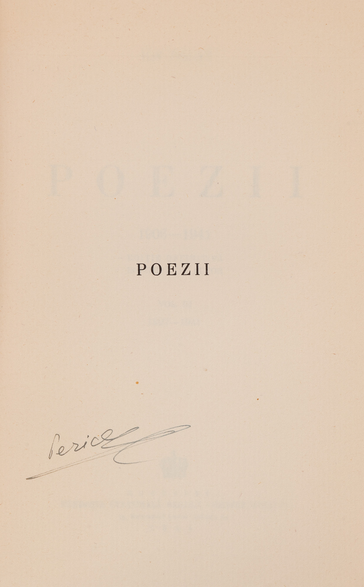 33. ”Poezii”, de Ion Pillat, trei volume, ediție princeps, București, 1944, provin din colecția scriitorului Pericle Martinescu