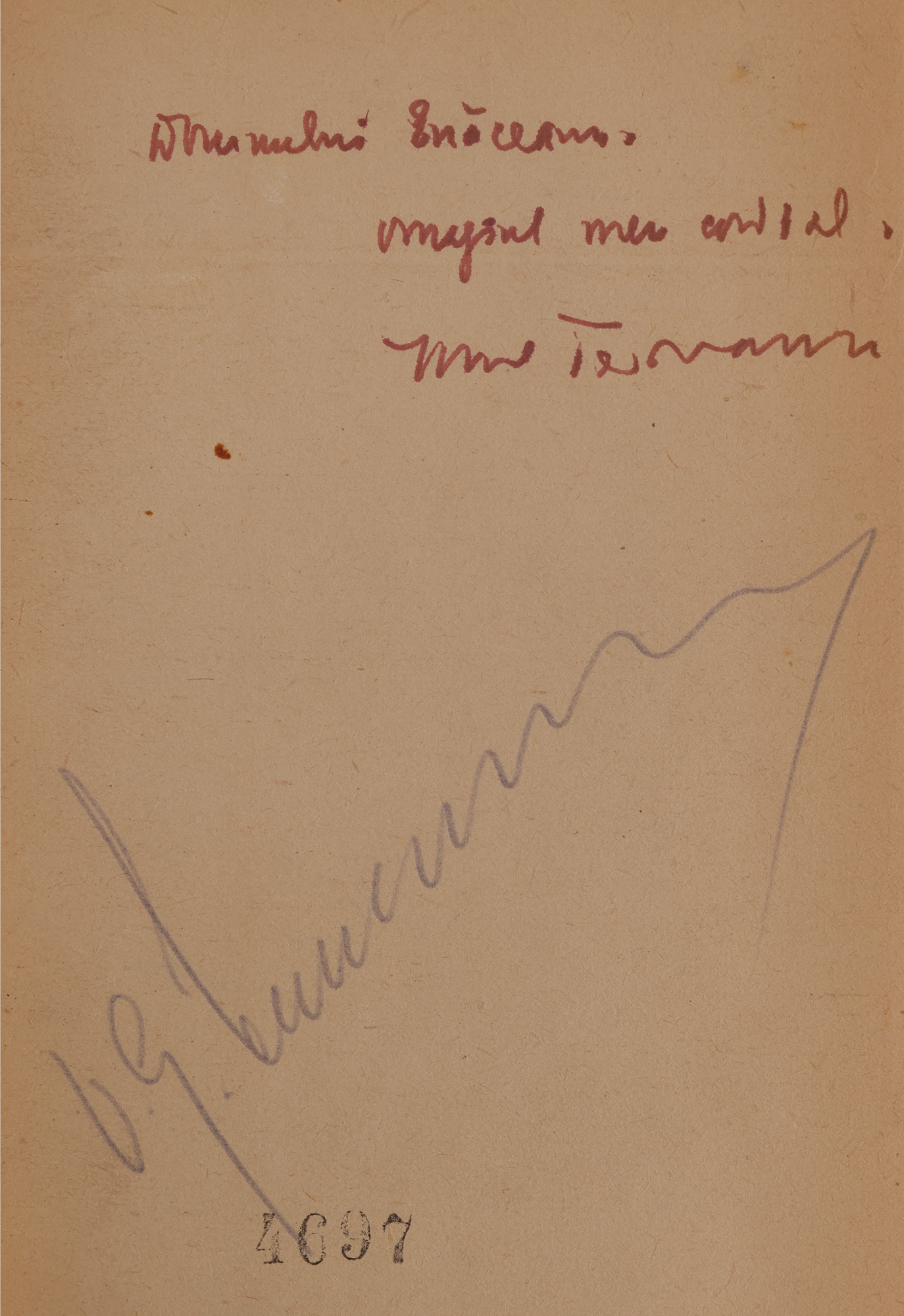23. ”Prăvale-baba”, de Ionel Teodoreanu, ediție princeps, București, 1939, cu dedicația și semnătura olografă a autorului