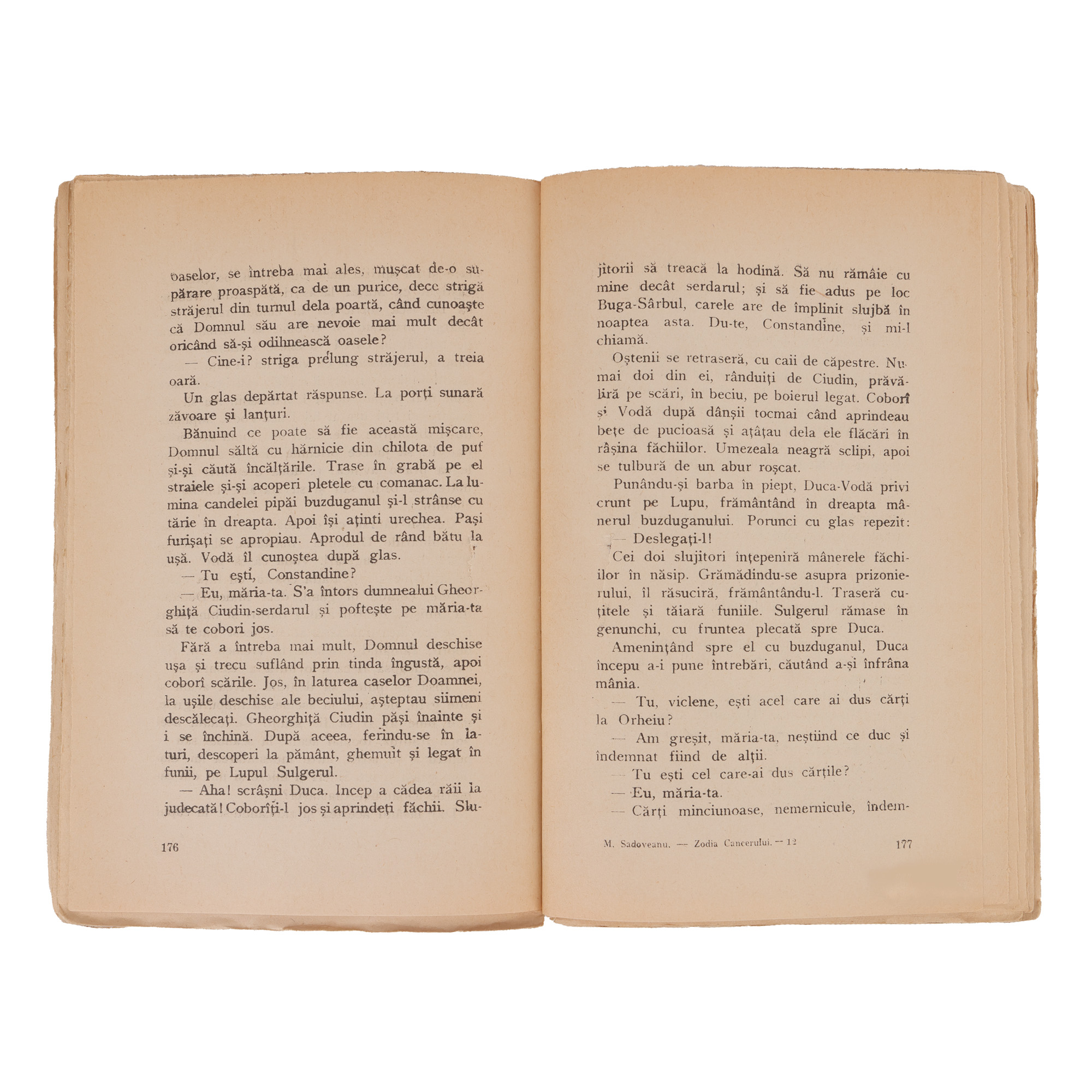 16. ”Zodia Cancerului sau vremea Ducăi-Vodă”, de Mihail Sadoveanu, București, 1945, cu dedicația autorului către Ana-Maria Manolescu