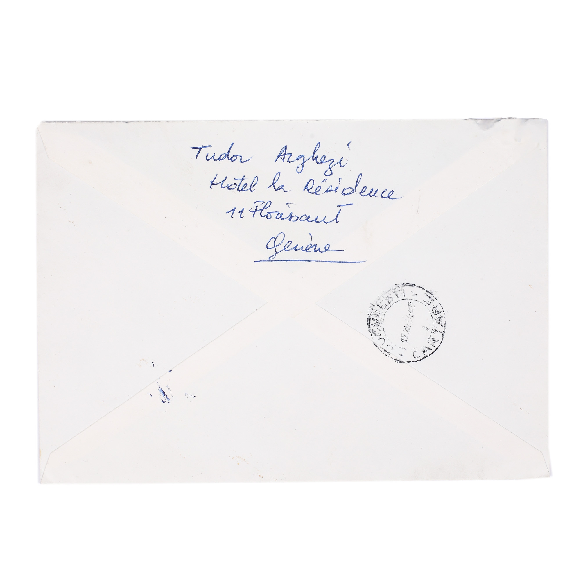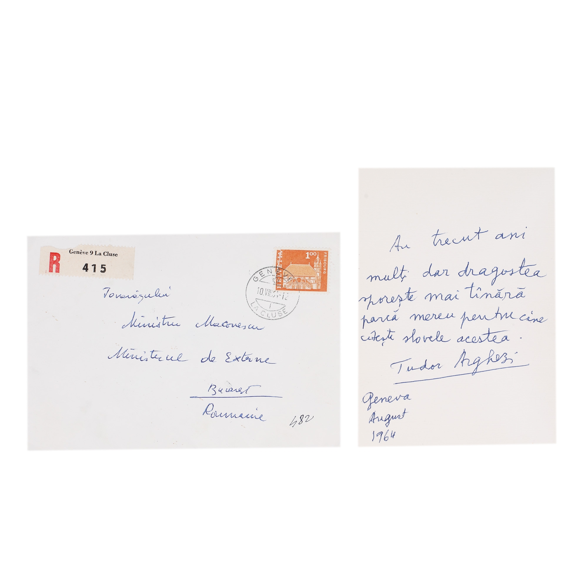 50. Corespondență inedită trimisă de Tudor Arghezi către George Macovescu, însoțită de plic, cu semnătura olografă, Geneva, 1964, provine din colecția fostului ministru de externe George Macovescu