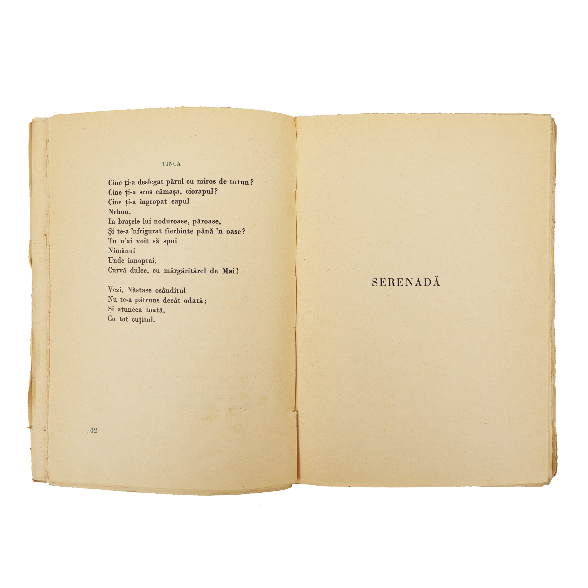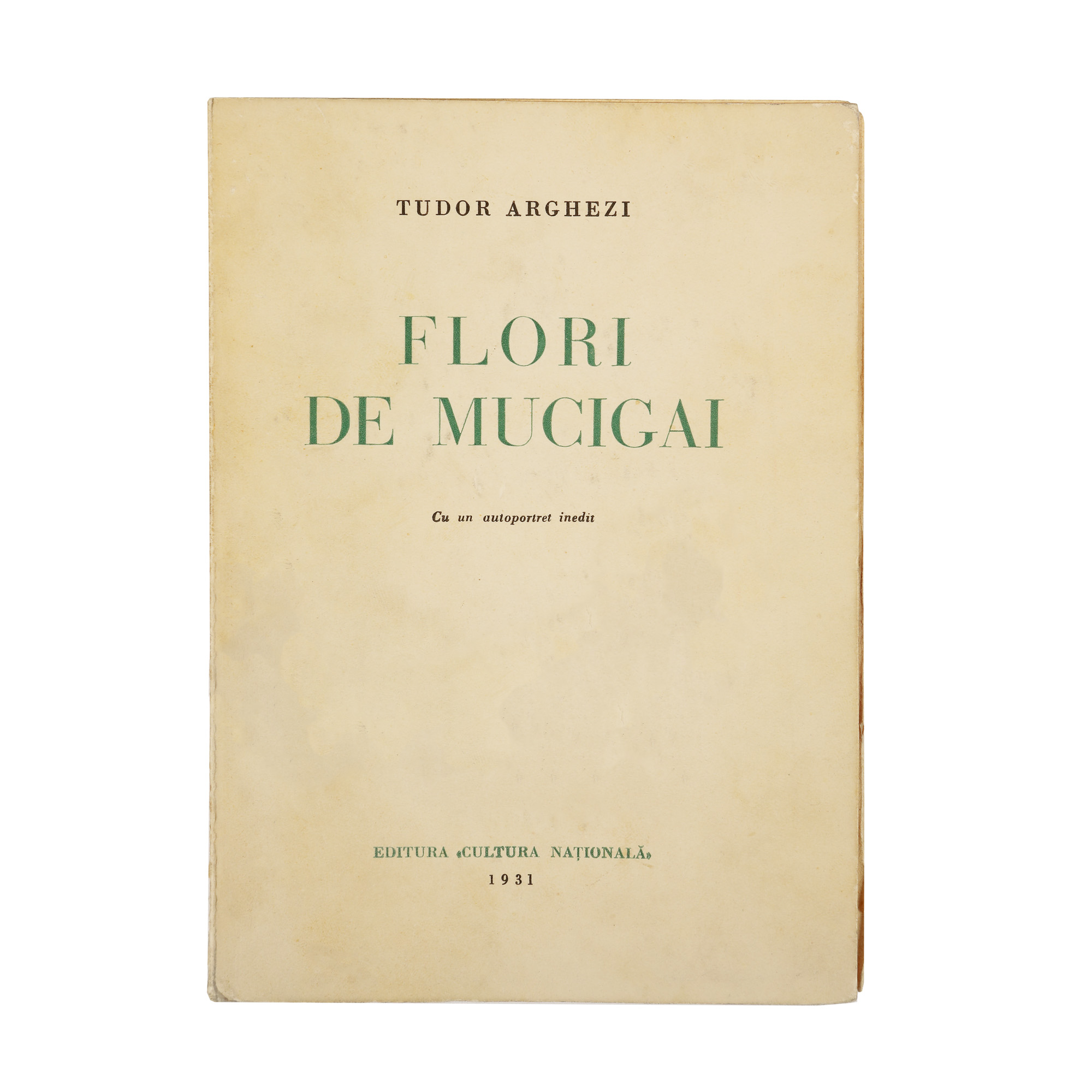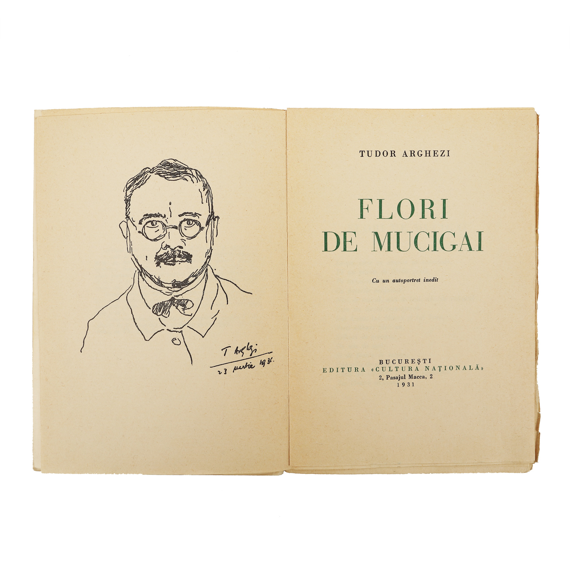 9. ”Flori de Mucigai", de Tudor Arghezi, ediție princeps, București, 1931, cu un autoportret inedit, provine din colecția scriitorului Vania Gherghinescu