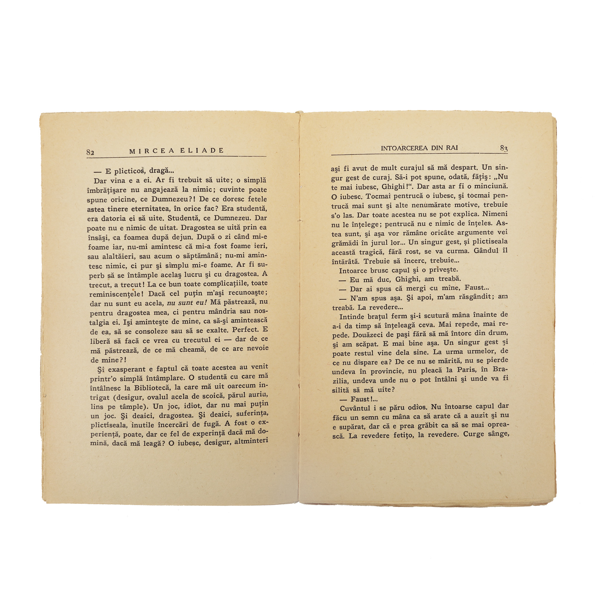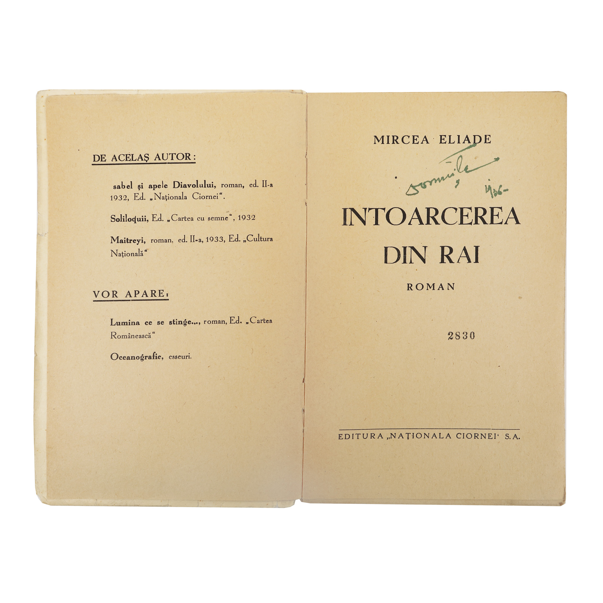 27. ”Întoarcerea din Rai”, de Mircea Eliade, ediție princeps, București, 1934, provine din colecția scriitorului Vania Gherghinescu