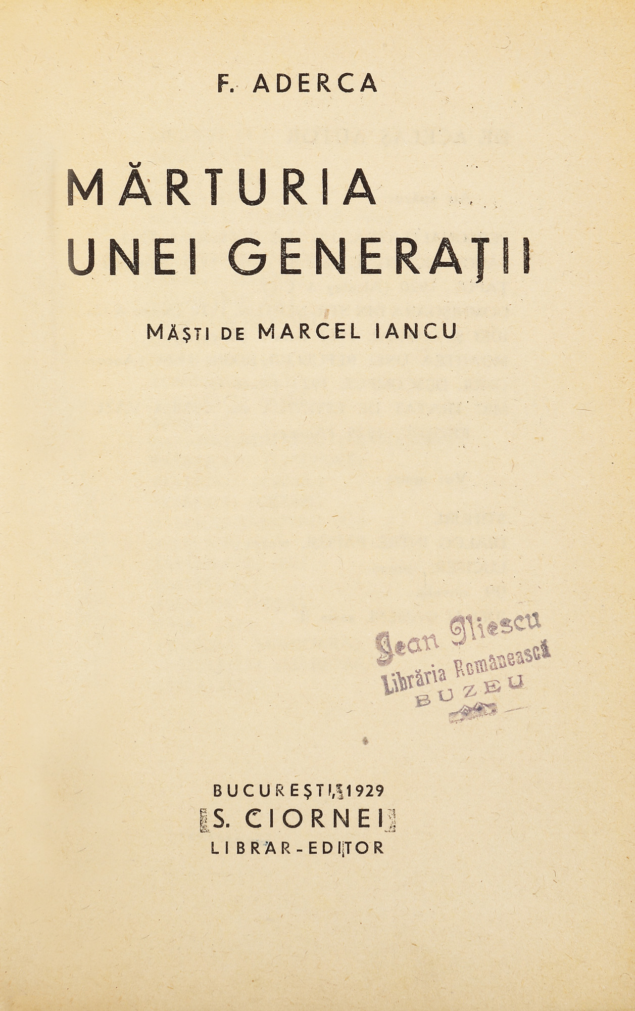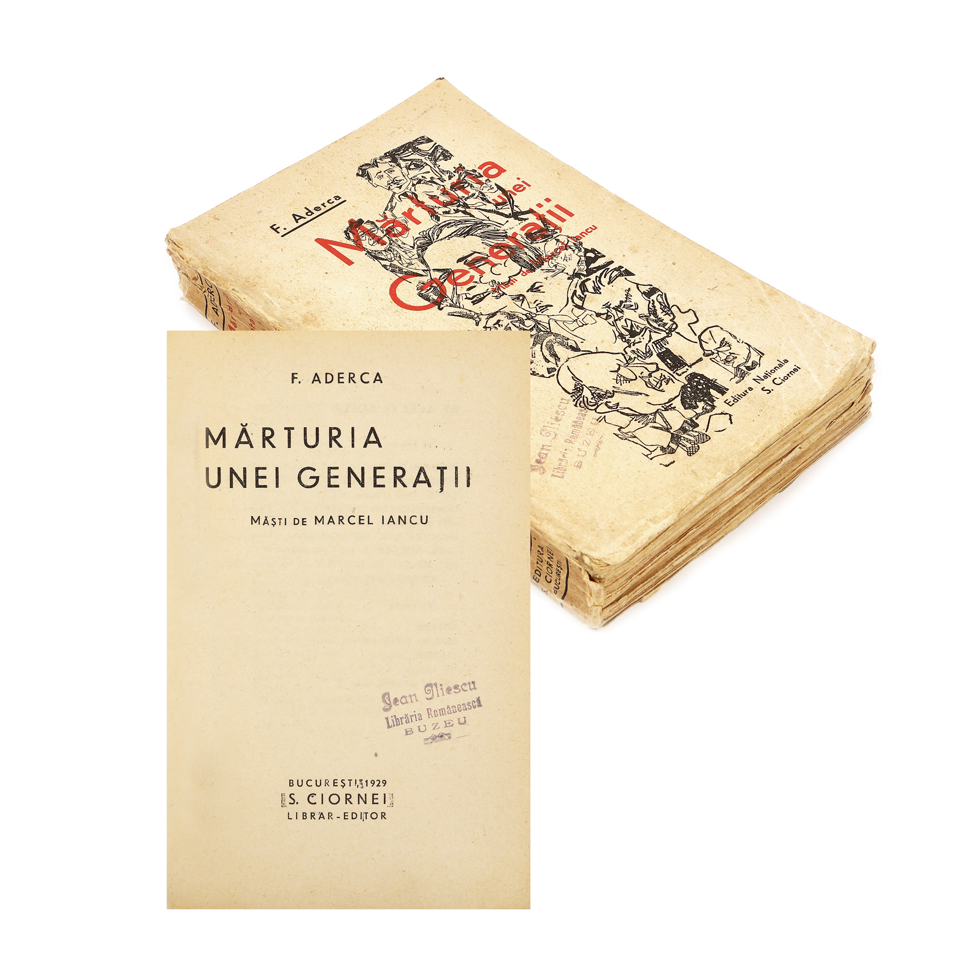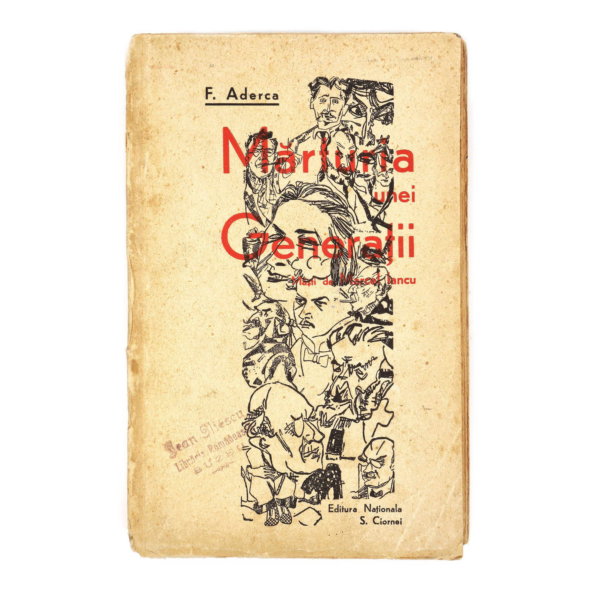 43. ”Mărturia unei Generații”, de Felix Aderca, cu desene de Marcel Iancu, ediție princeps, București, 1929, cu semnătura olografă a autorului