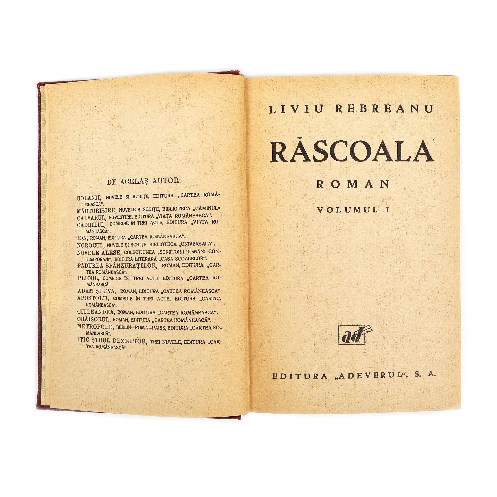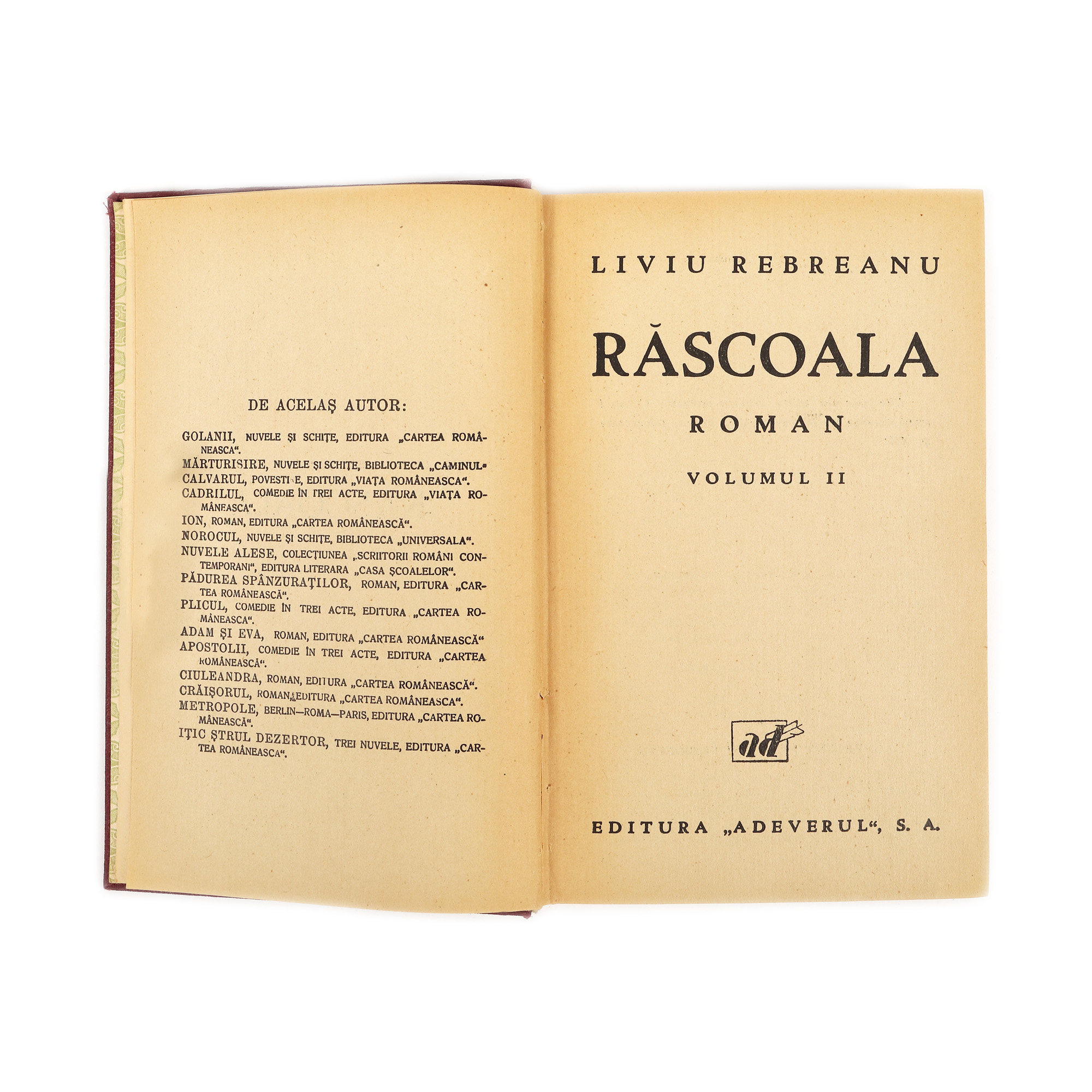 25. ”Răscoala”, de Liviu Rebreanu, două volume, ediție princeps, București, 1932