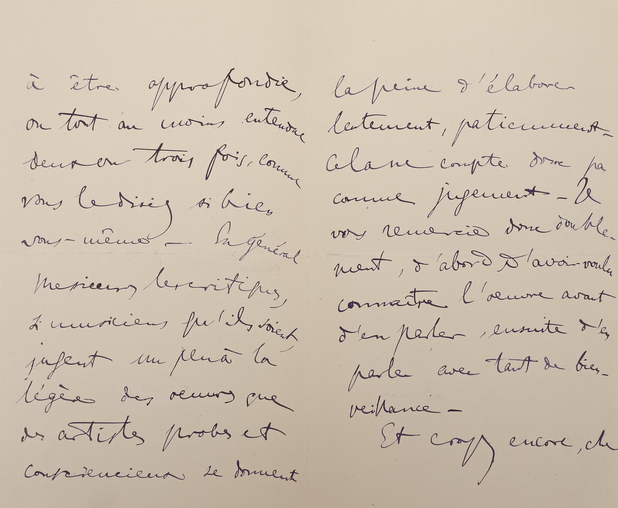 14. Scrisoare amicală trimisă de George Enescu către prietenul și criticul muzical Robert Brussel, Paris, 1906, cu semnătura olografă a compozitorului (1 filă)