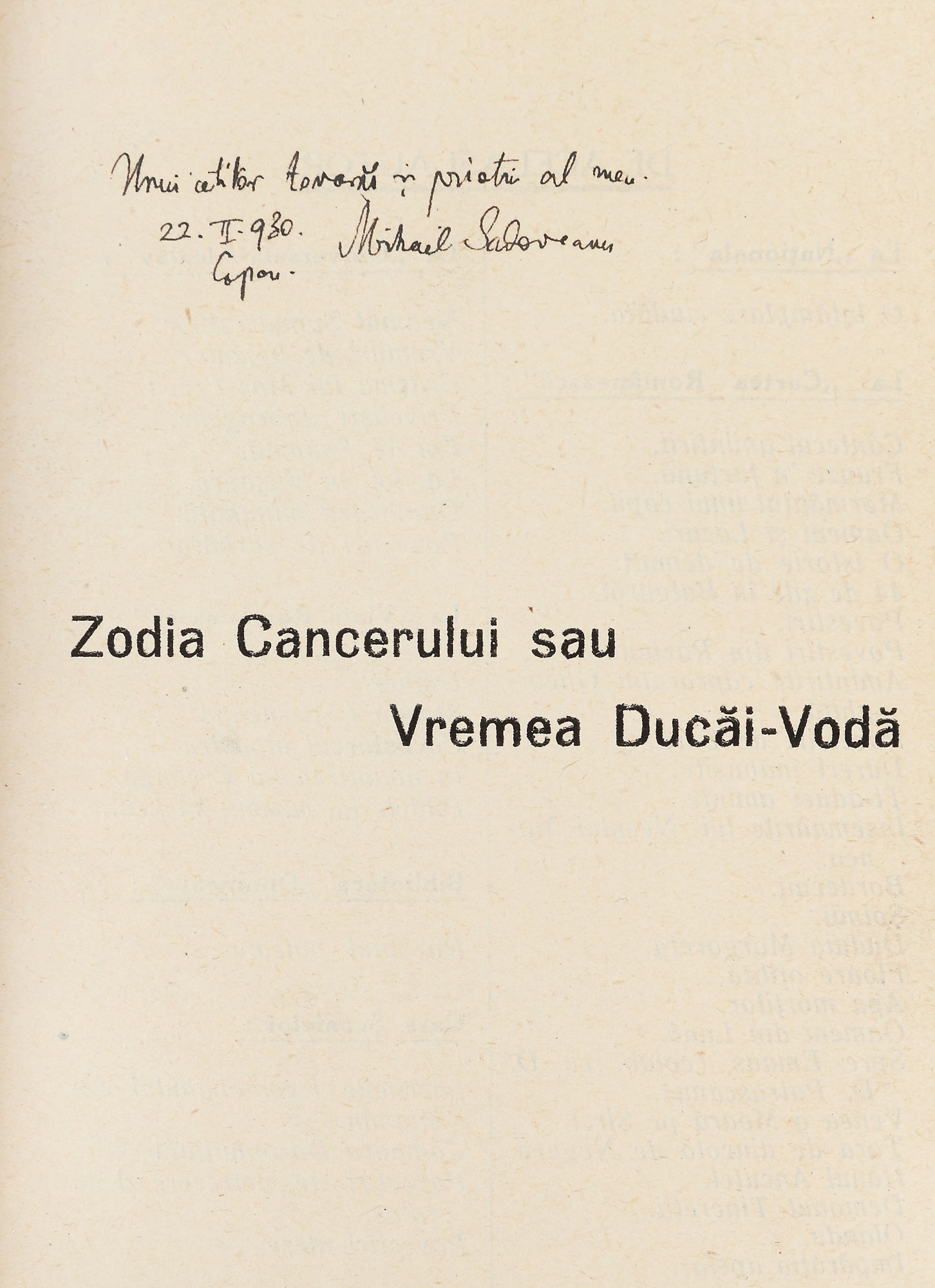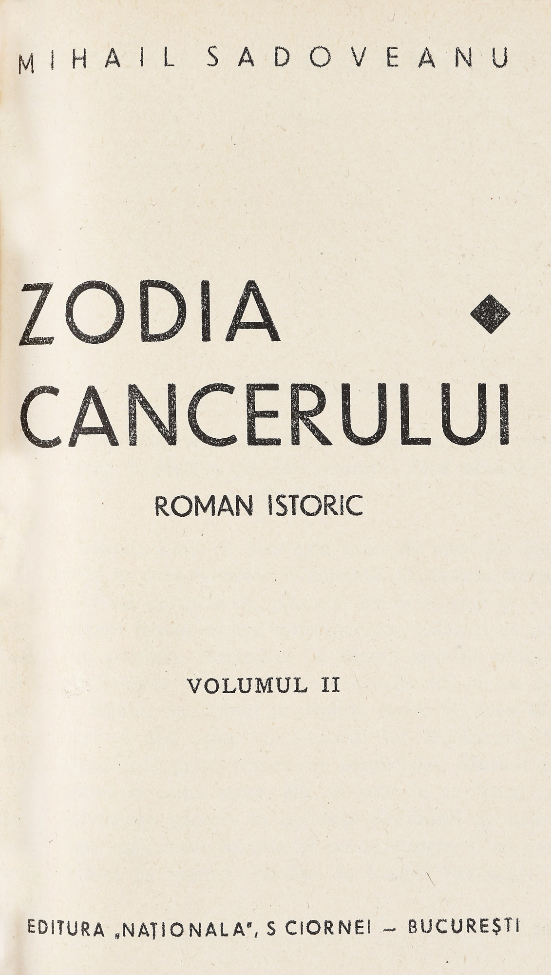 12. Colegat de două volume ”Zodia Cancerului sau vremea Ducăi-Vodă”, de Mihail Sadoveanu, ediție princeps, București, 1929, cu dedicația și semnătura olografă a autorului