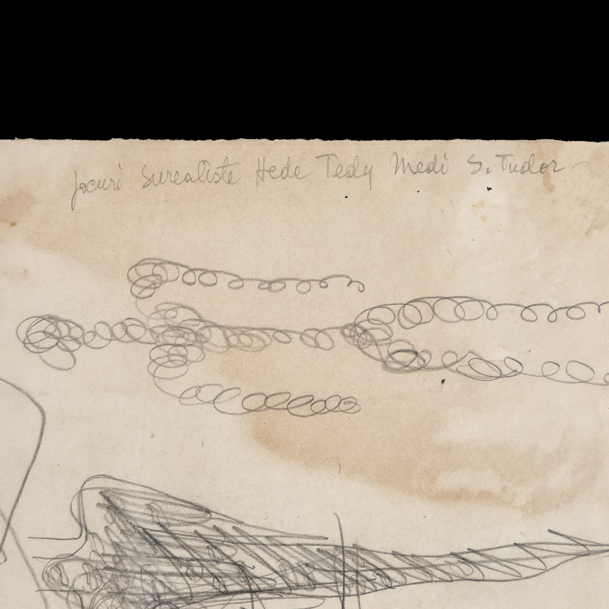 Două jocuri scrise și desenate de Sandu Tudor împreună cu Théodore Brauner, cunoscut sub pseudonimul de Teddy, și Margareta Wechsler Dinu. Una dintre cele două foi conține schimburi de replici comice între Sandu Tudor și Teddy Brauner, iar cealaltă, un dialog fragmentar între cei trei, dar și desene realizate de Teddy Brauner și Medi Dinu. Jocurile sunt schițate în creion pe două coli veline, dintre care una recto-verso. Jocul se numește cadavre exquis - „cadavru încântător” și a fost inventat de reprezentanții mișcării suprarealiste. Denumirea îi provine de la o propoziție care a rezultat din prima rundă jucată vreodată, „Le cadavre exquis boira le vin nouveau”, tradus „Cadavrul încântător va bea vinul nou". La origine, presupune ca jucătorii să-și aducă în scris, pe rând, contribuțiile pe o foaie de hârtie, să o împăturească în așa fel încât să ascundă partea respectivă a foii și să o paseze următorului jucător pentru viitoarea contribuție. Reprezintă o variație a jocului Consecințe, vechi joc victorian de salon, iar versiunea adaptată grafiei schimbă propozițiile în porțiuni de desen progresiv adăugate, însă păstrează principiul.
