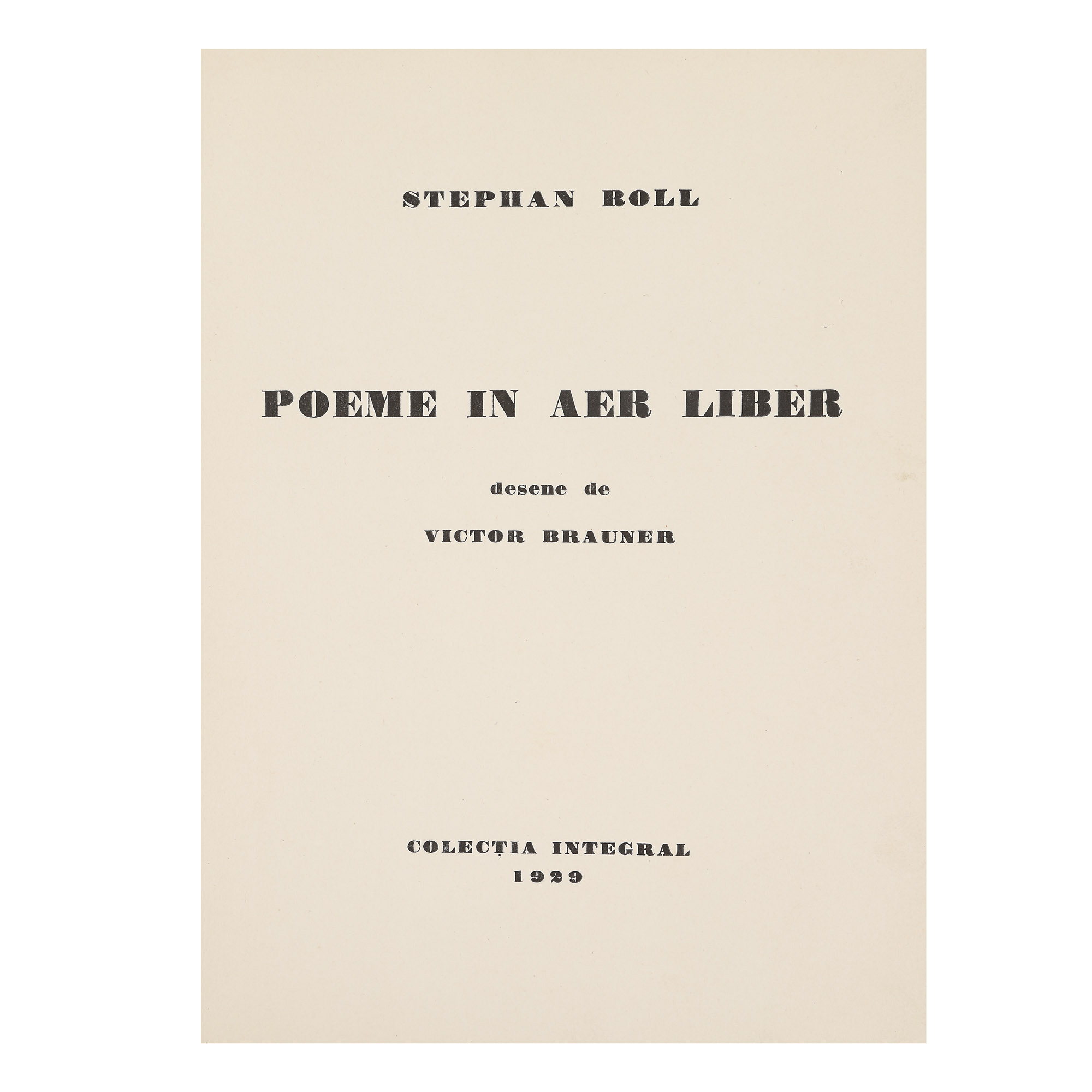 27. ”Poeme în aer liber”, de Stephan Roll, București, 1929, cu desene de Victor Brauner, dedicația și semnătura olografă a autorului către poetul Vasko Popa