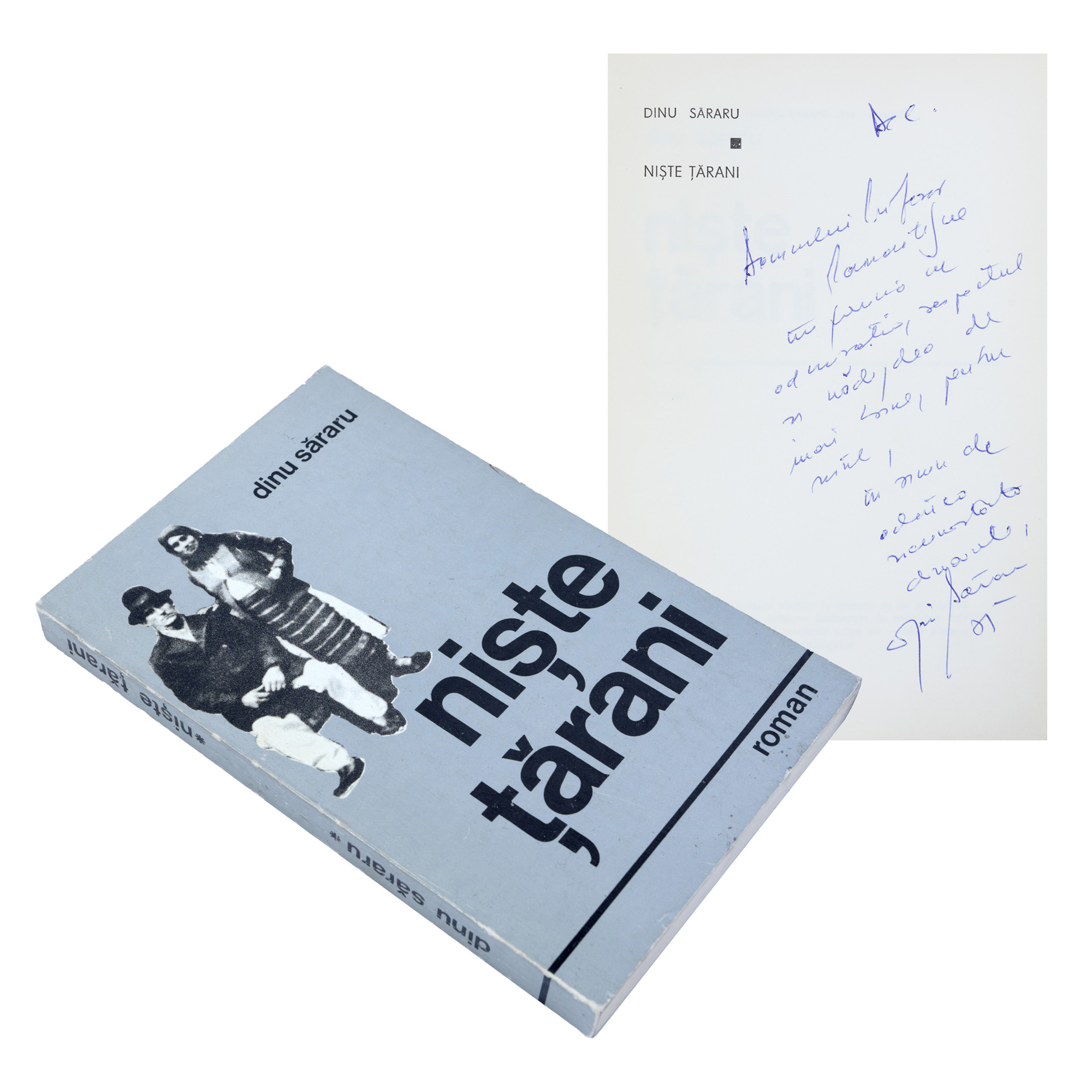 35. "Niște țărani", de Dinu Săraru, București, 1975, cu semnătura olografă și dedicația autorului