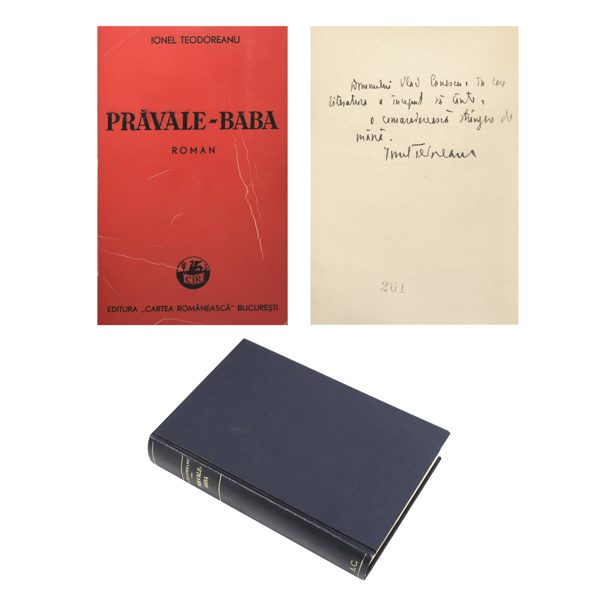 21. "Prăvale-Baba", de Ionel Teodoreanu, București, 1939, cu dedicația și semnătura autorului