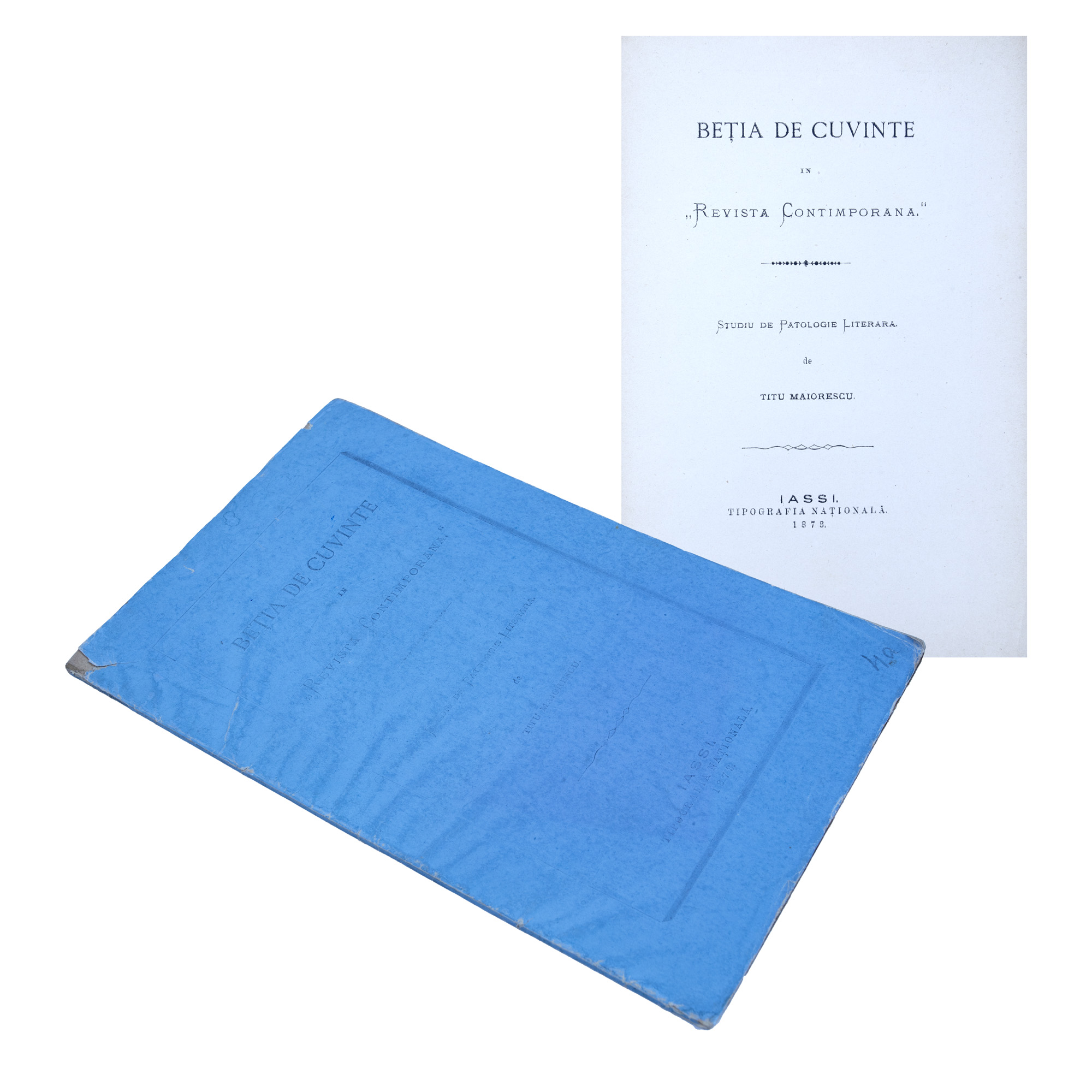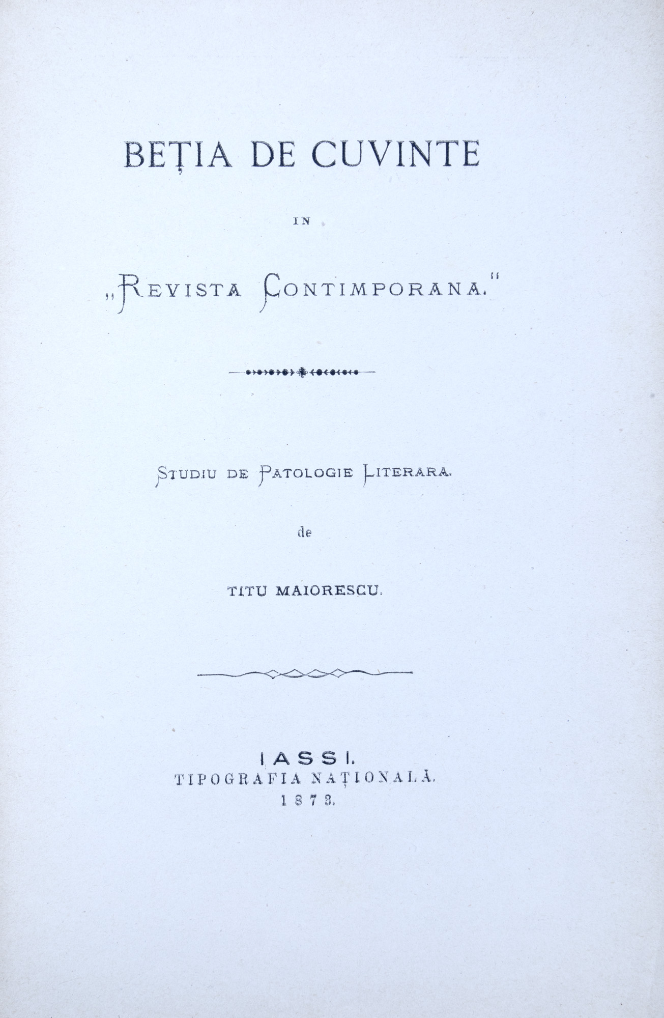 59. ”Beția de cuvinte în Revista Contimporană. Studiu de patologie literară", de Titu Maiorescu, Iași, 1873