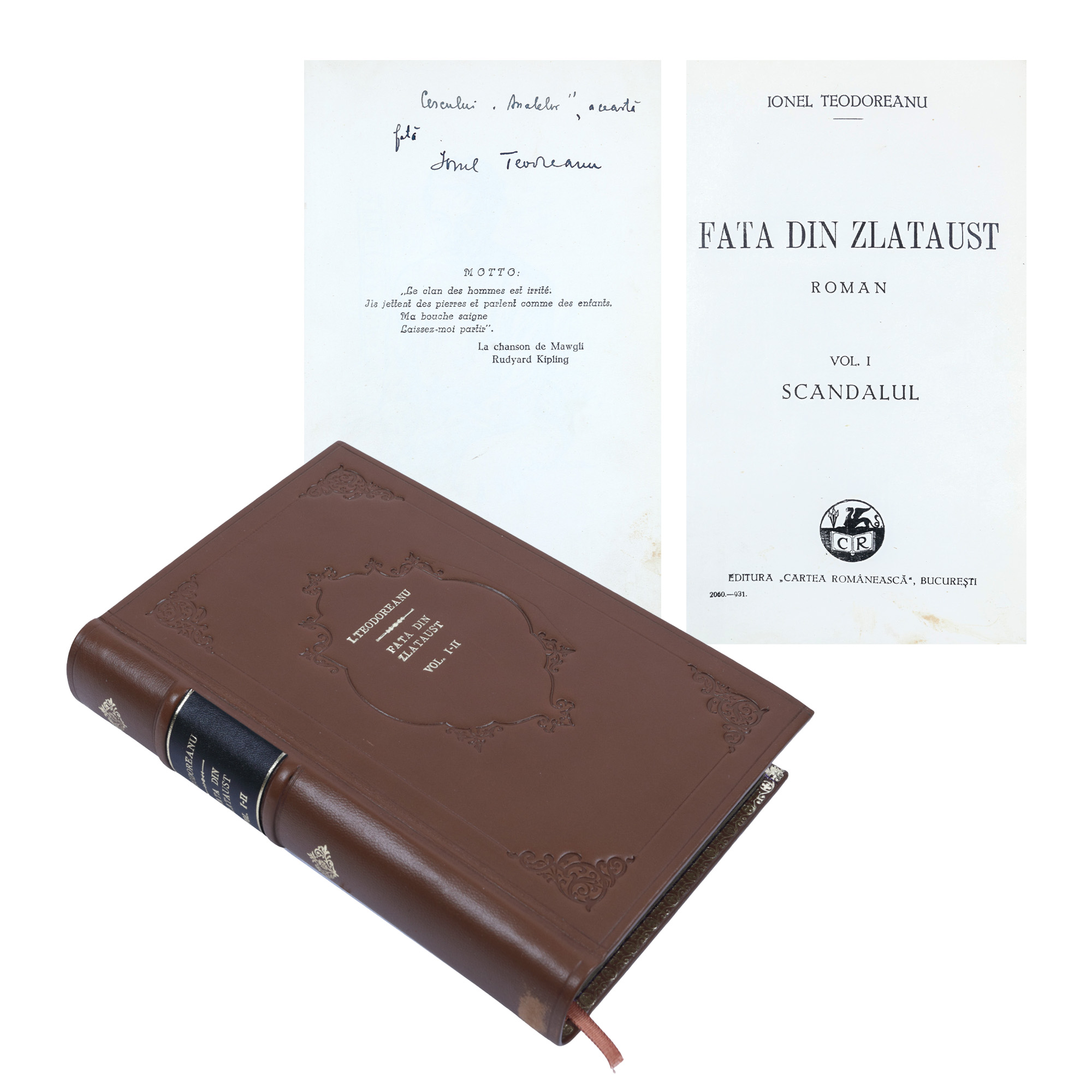 38. Colegat de două volume ”Fata din Zlataus”, de Ionel Teodoreanu, ediție princeps, București, 1931, cu etui, dedicația și semnătura olografă a autorului