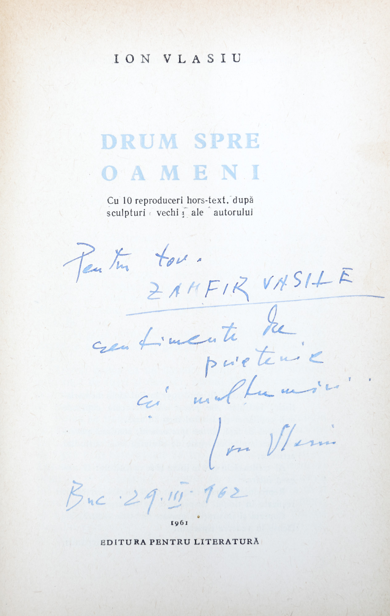 57. "Drum spre oameni", de Ion Vlasiu, București, 1961, cu semnătura olografă și dedicația autorului