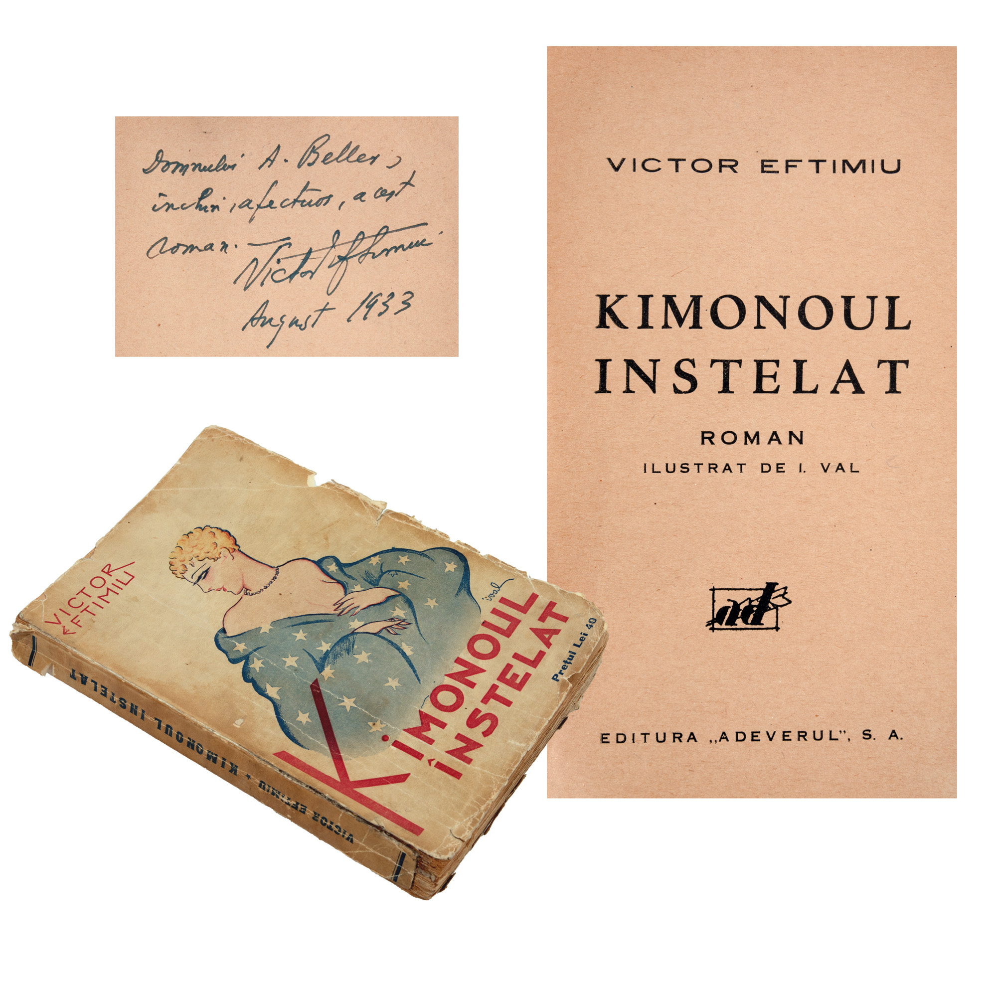 43. ”Kimonoul înstelat”, de Victor Eftimiu, București, 1933, cu dedicația autorului către A. Beller