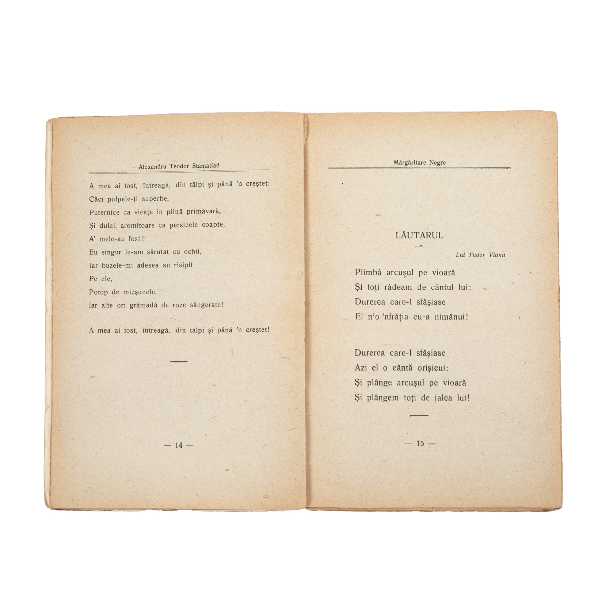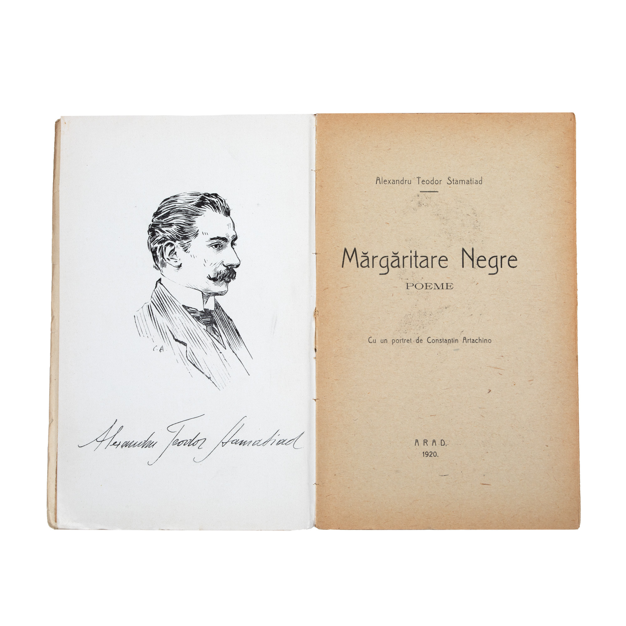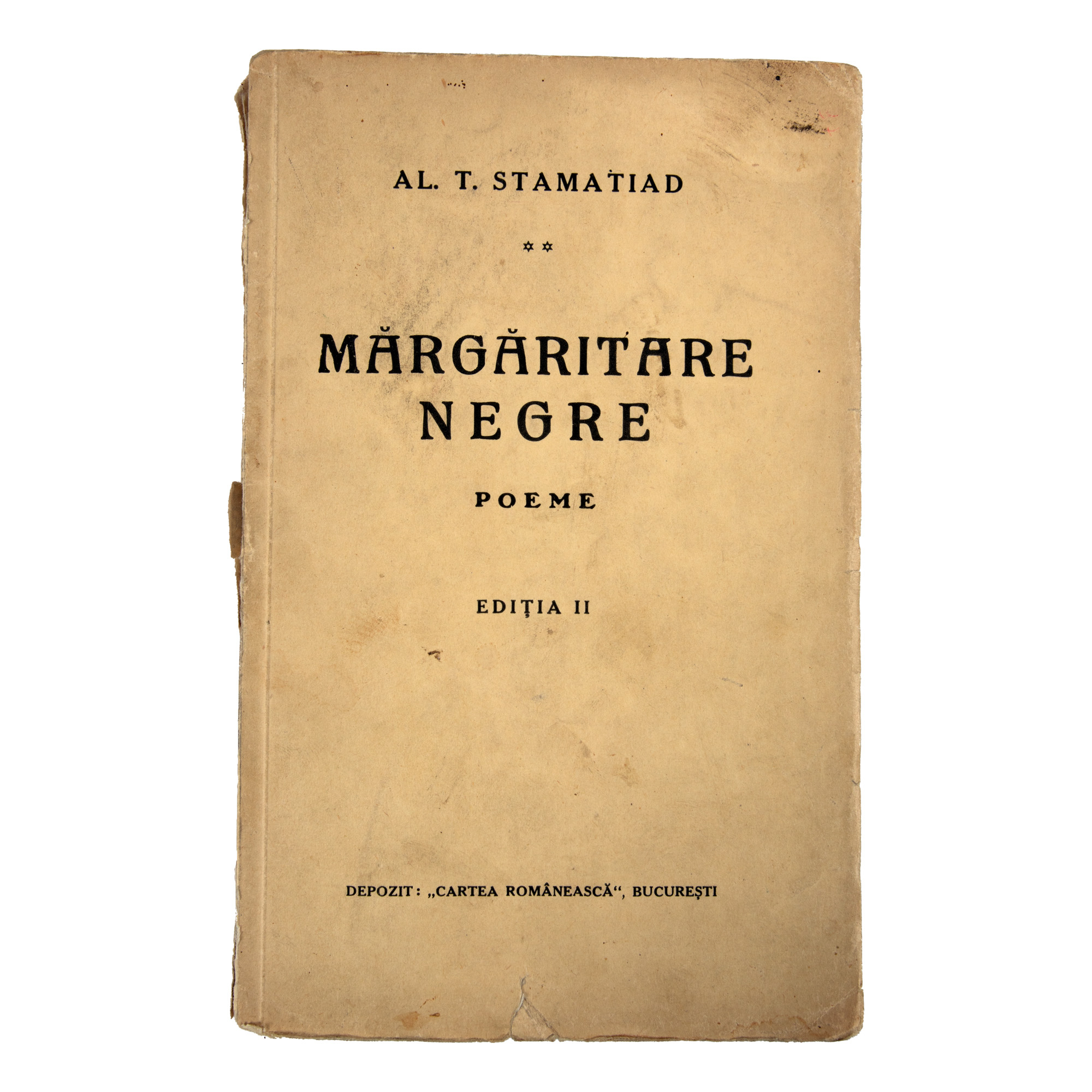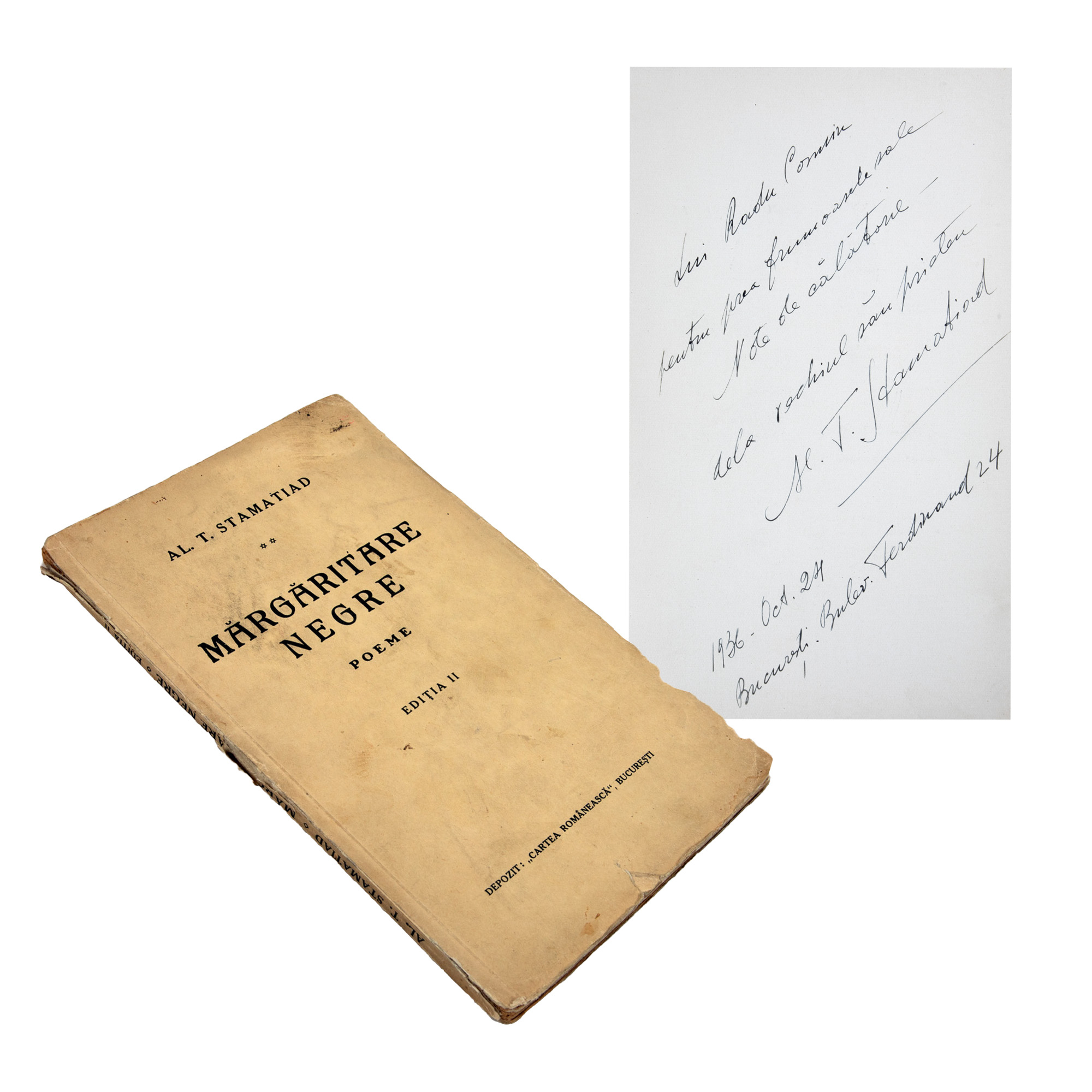 44. ”Mărgăritare negre”, de Al.T. Stamatiad, Arad, 1920, cu dedicația autorului către profesorul și scriitorul Radu Cosmin