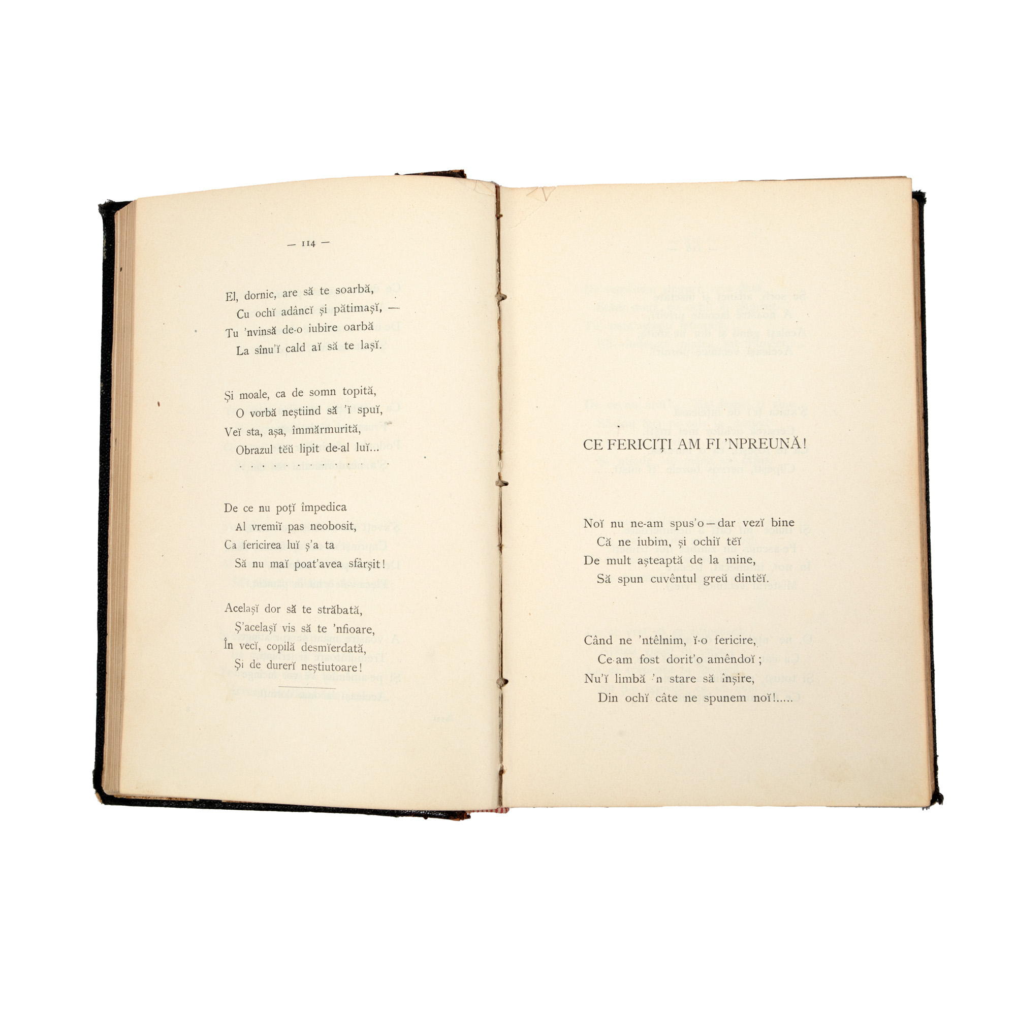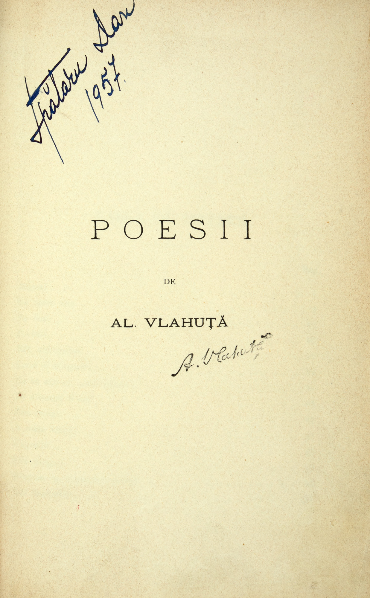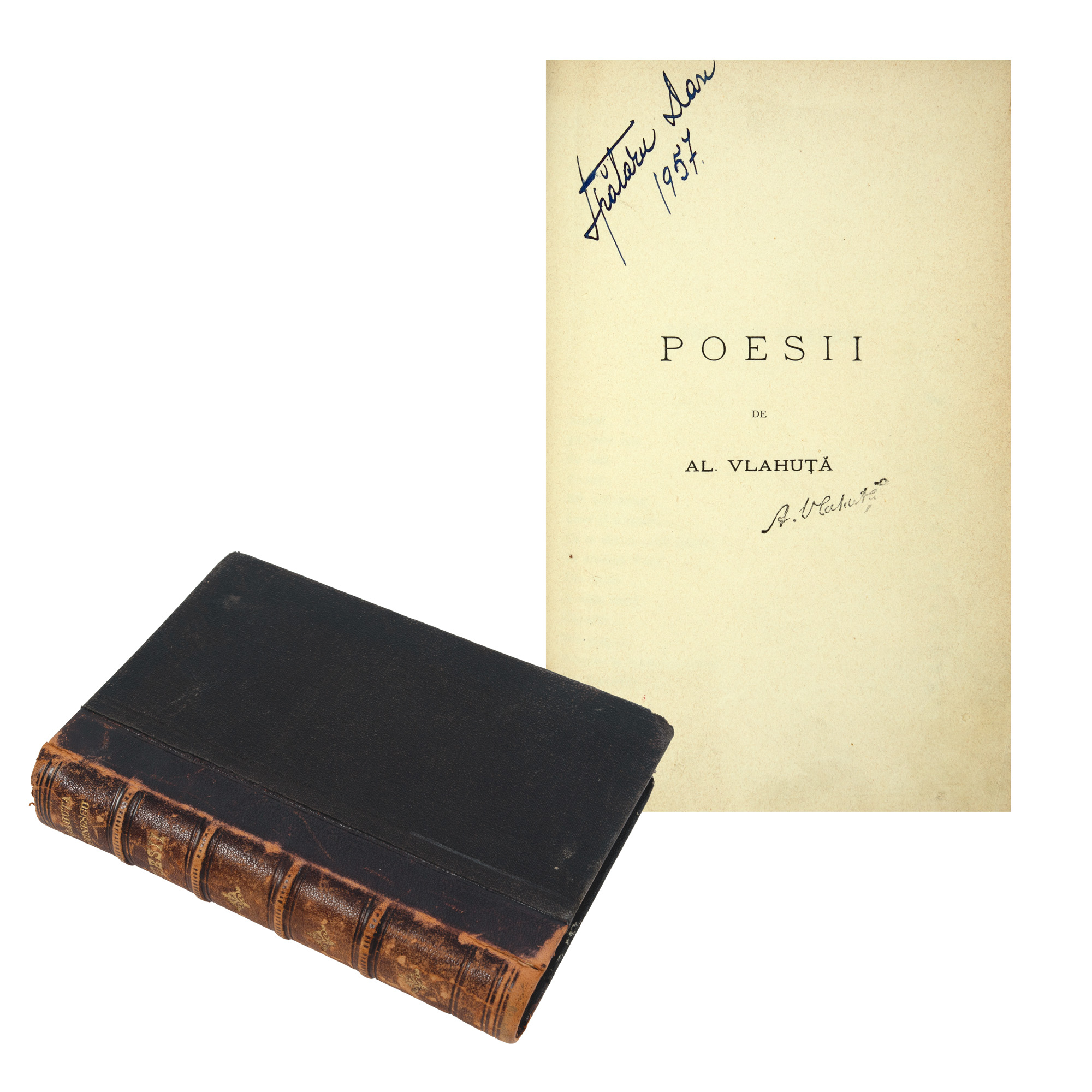 47. ”Poesii”, de Alexandru Vlahuță, București, 1892, cu ex-librisul autorului, colegat cu Mihai Eminescu, Poesii, București, 1895, ediția a șaptea a ediției Maiorescu