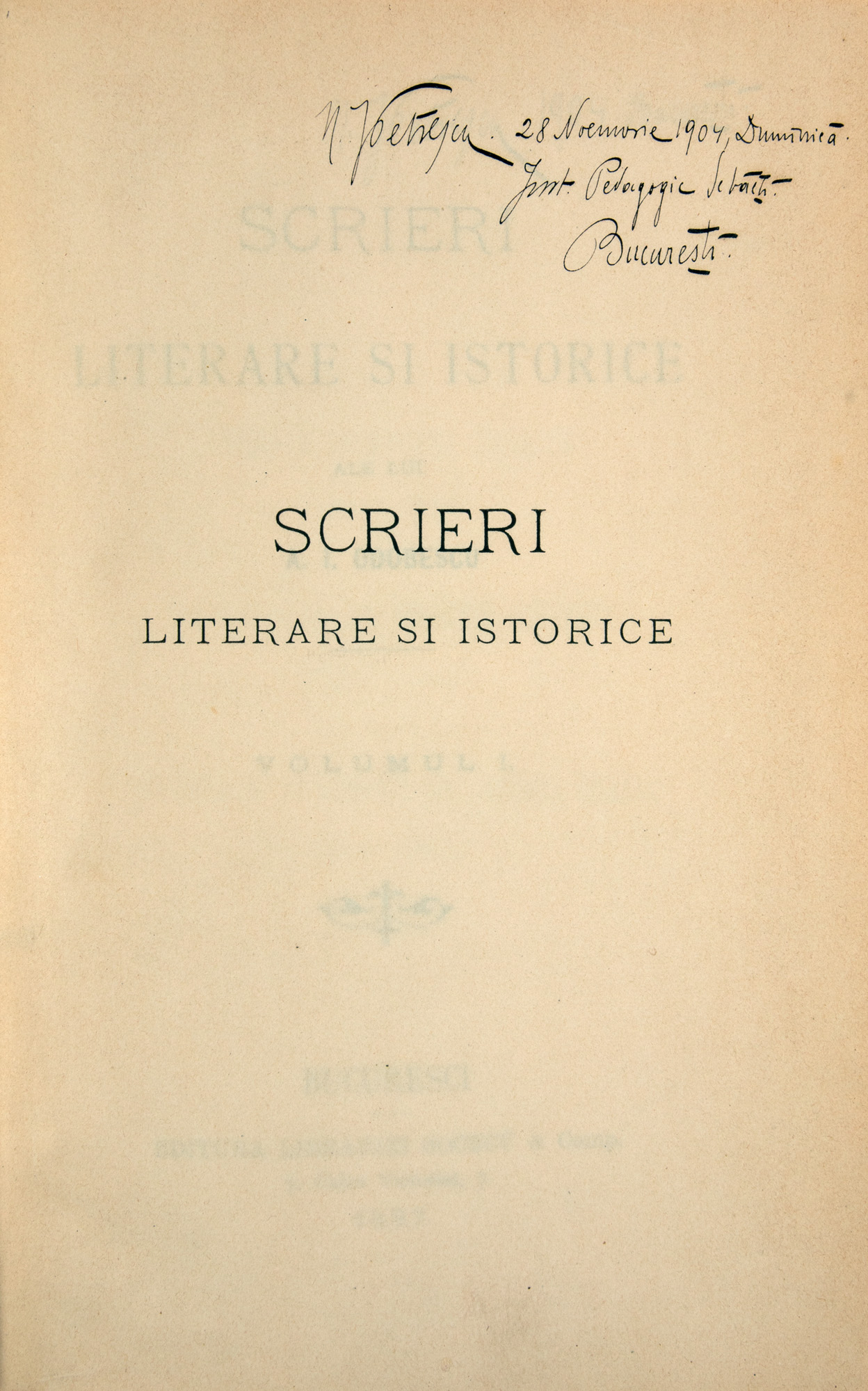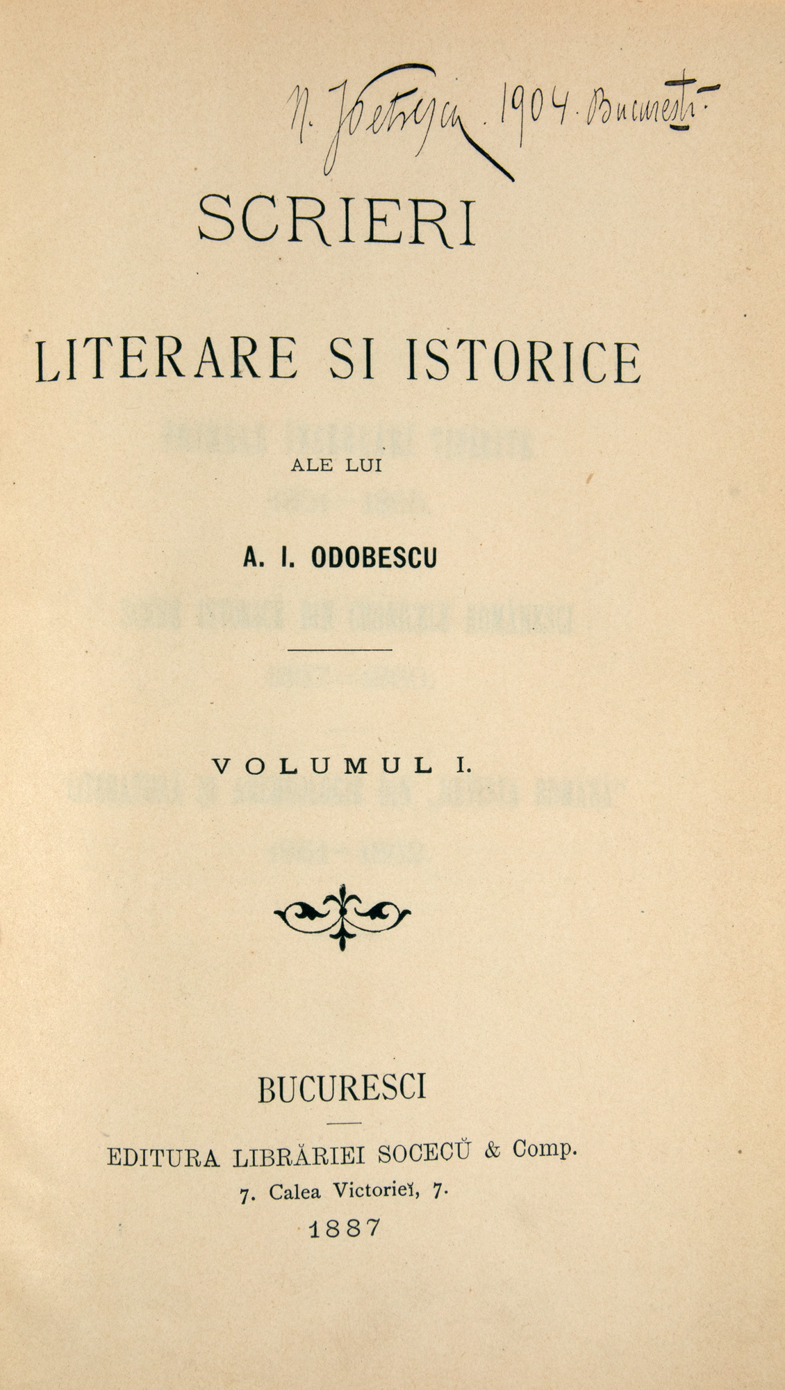 49. ”Scrieri literare și istorice”, de A.I. Odobescu, volumul I, București, 1887, cu ex-libris