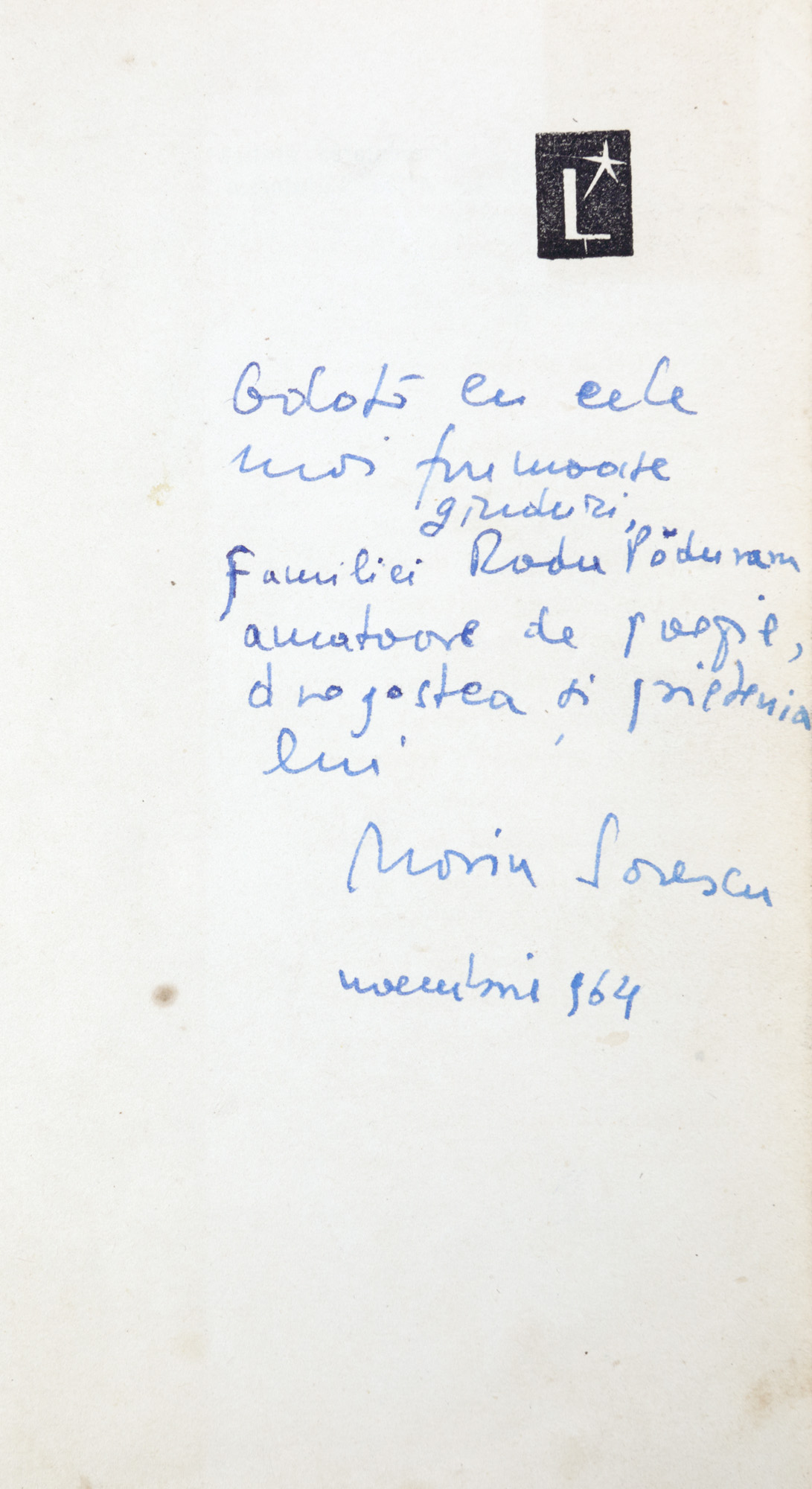 7. ”Singur printre poeți” de Marin Sorescu, volum de debut, ediție princeps, București, 1964, cu dedicația și semnătura olografă a autorului