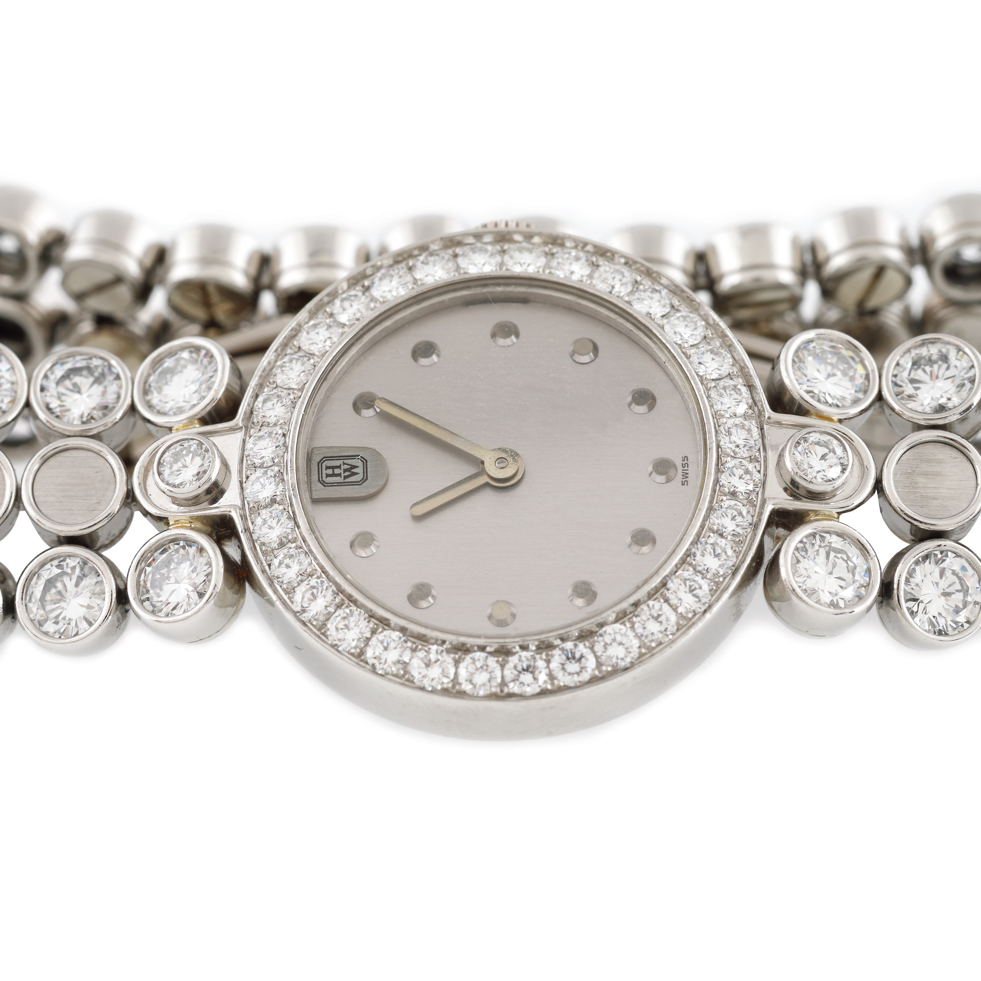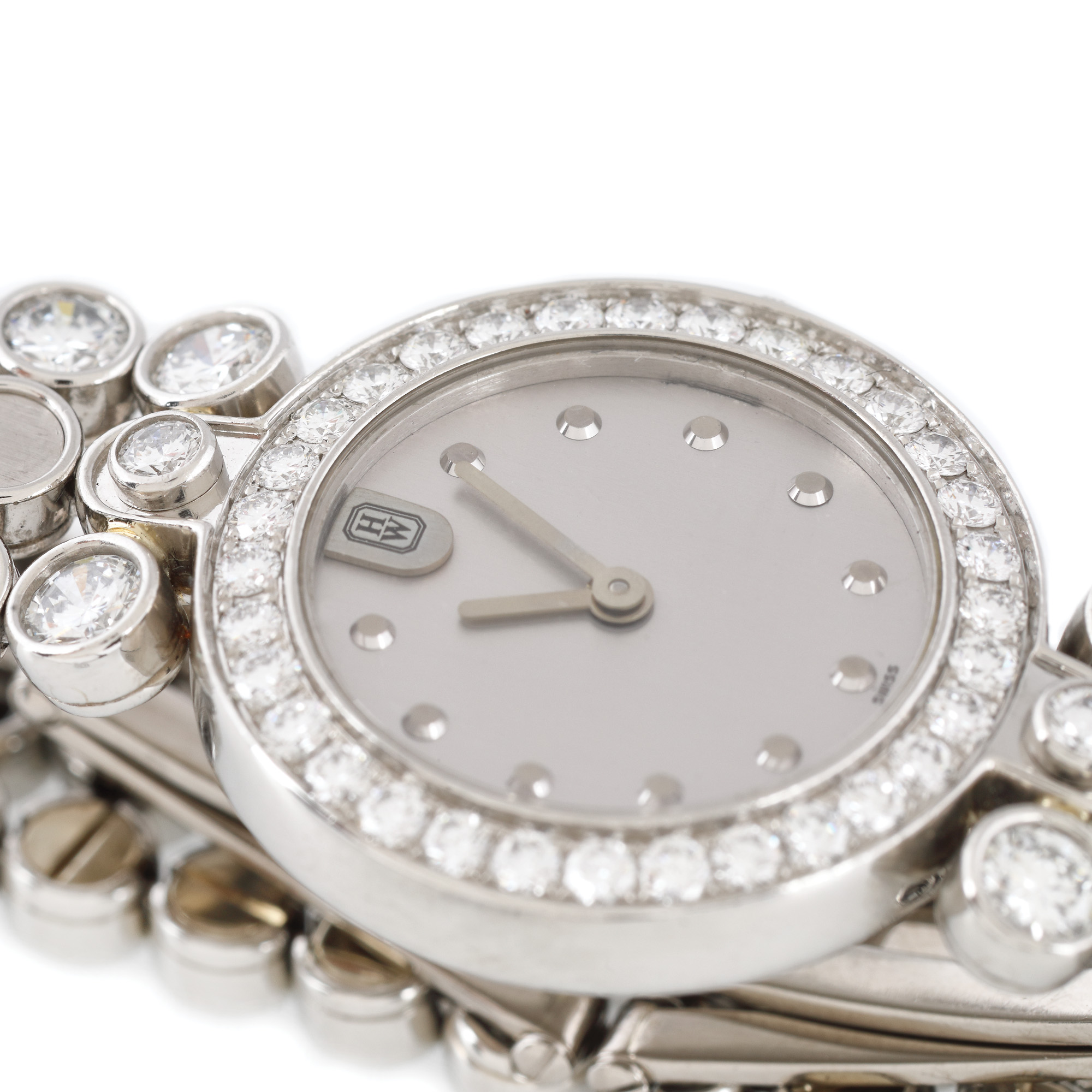 32. Ceas Harry Winston Premier Diamond Timepiece, din platină, de mână, de damă, decorat cu diamante, vine însoțit de actele de proveniență
