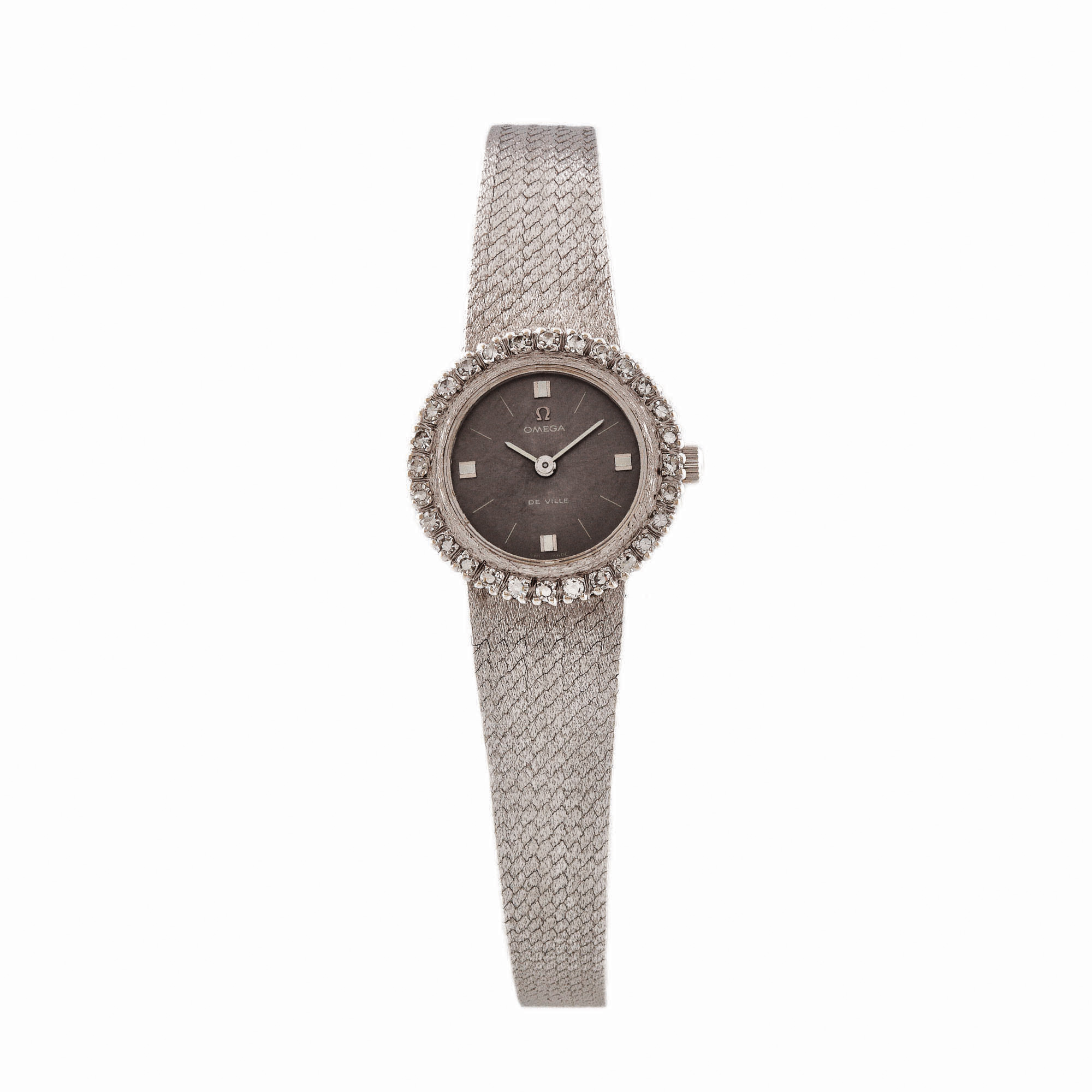 4. Ceas Omega De Ville, de mână, de damă, din aur alb, cu diamante [Cca. 1970]