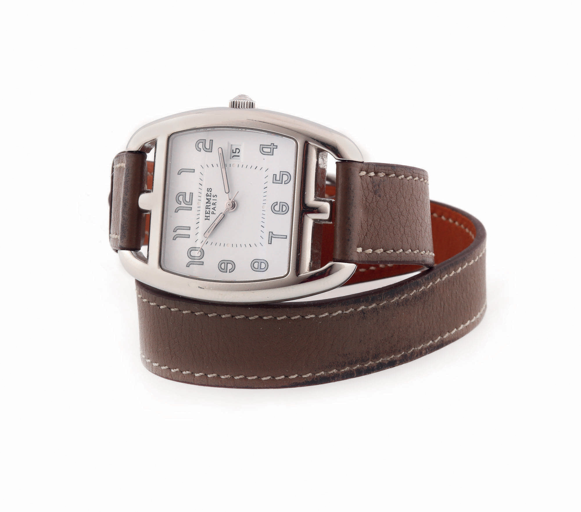 14. Ceas Hermès Cape Cod Tonneau, de mână, de damă, curea dublă [Cca. 2010]