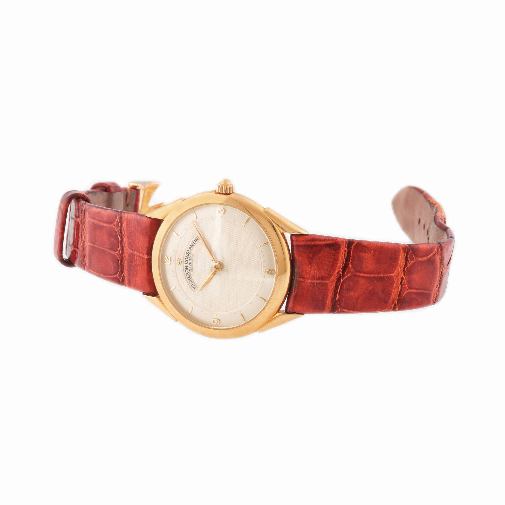 Ceas Vacheron Constantin Historiques, de mână, bărbătesc, din aur. Referință 31045, calibru 1132-2, mecanism cu armare manuală, curea din piele de crocodil, de culoare maro, închizătoare originală, din aur.