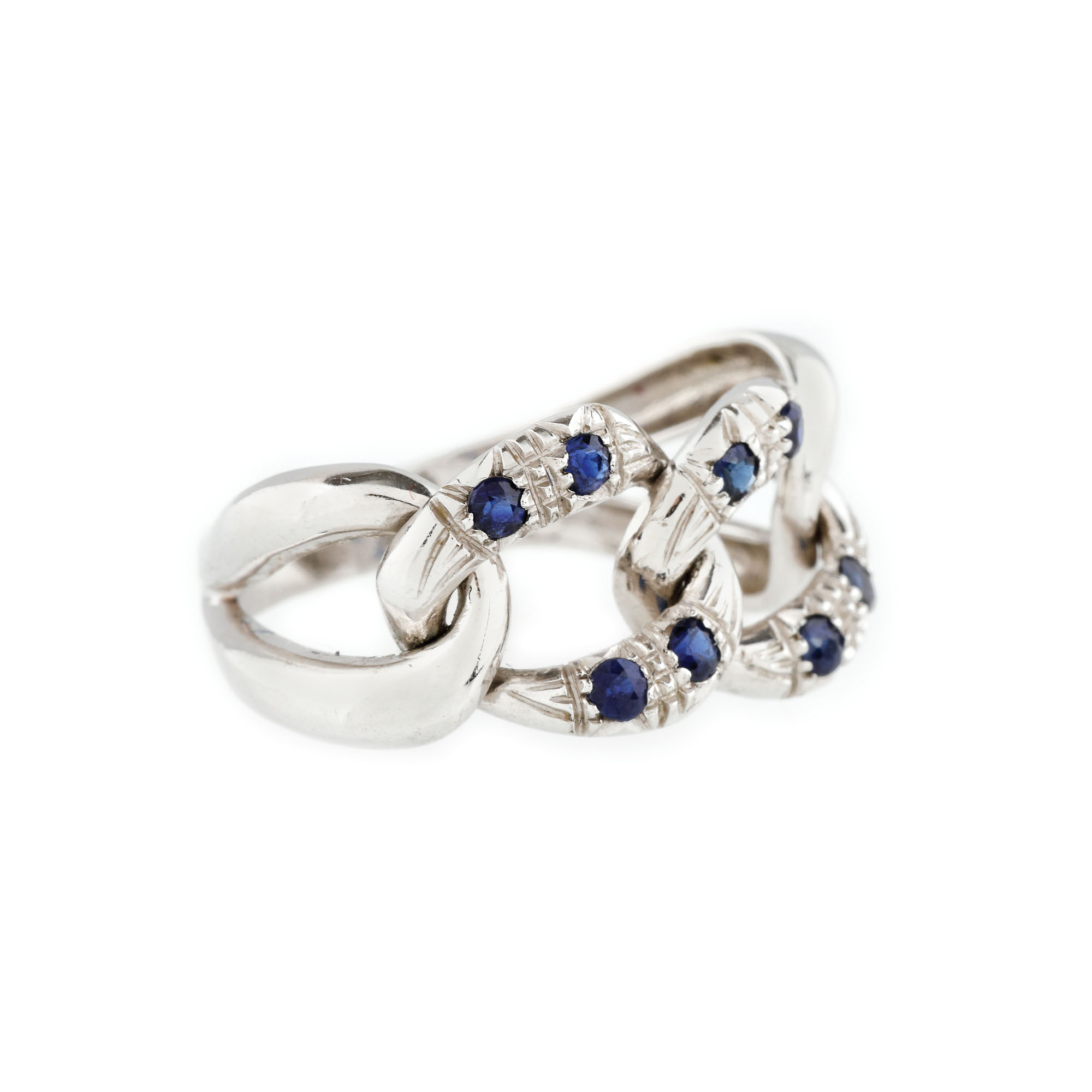 12. Inel din aur alb, cu încleștare de zale decorate cu safire