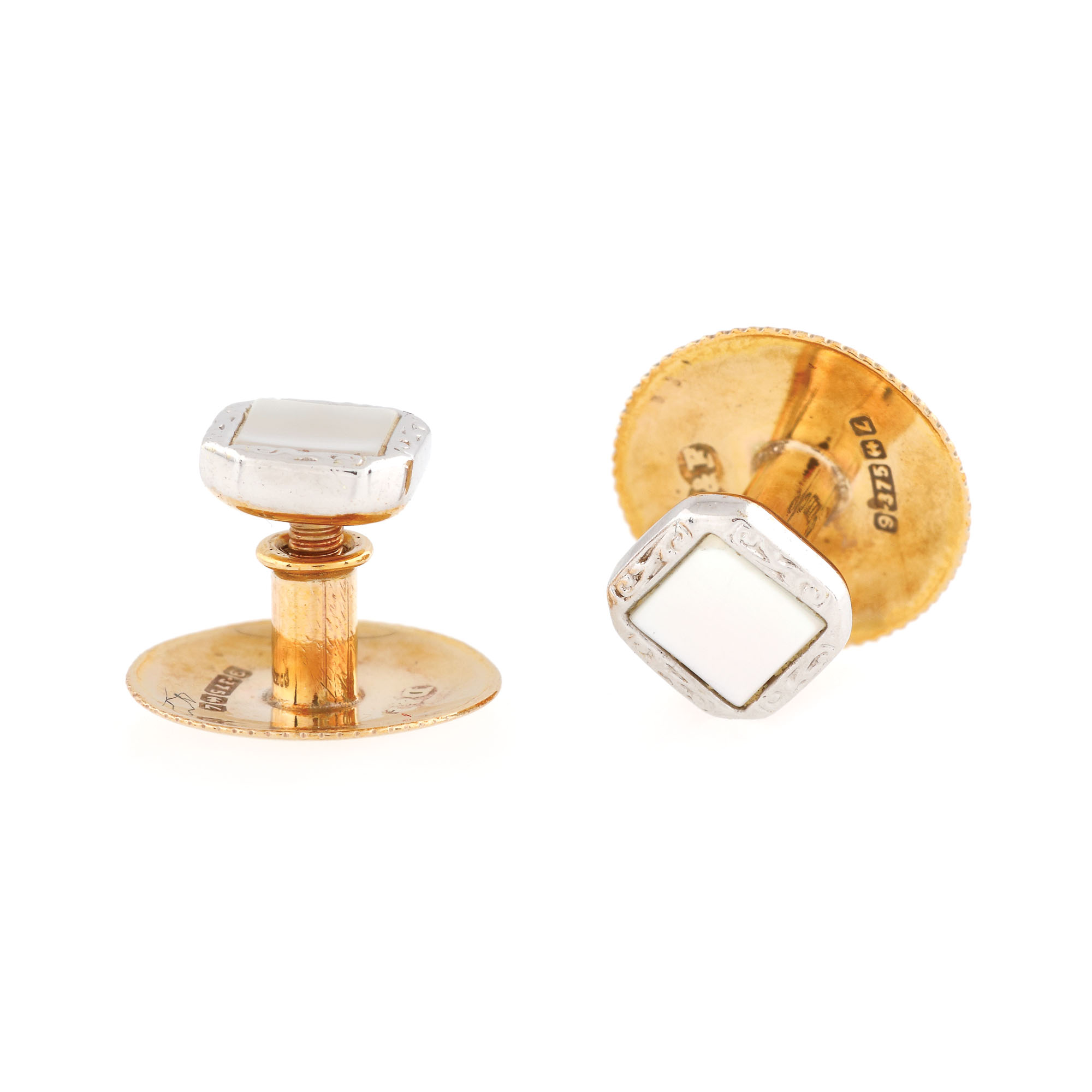 26. Pereche de butoniere Deakin and Francis din aur, decorată cu sidef