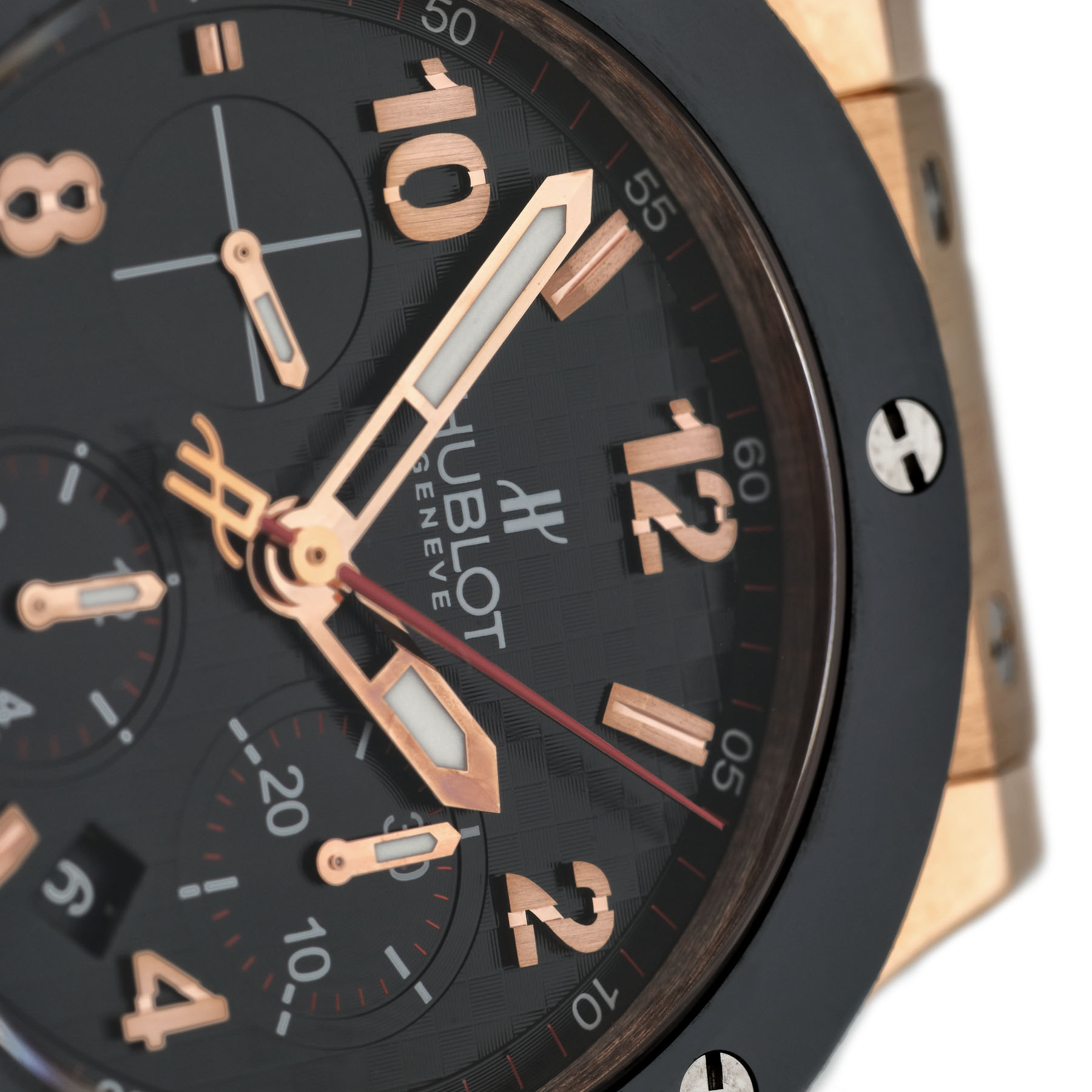 19. Ceas Hublot Big Bang, din aur roz și ceramică, de mână, bărbătesc, însoțit de cardul de garanție
