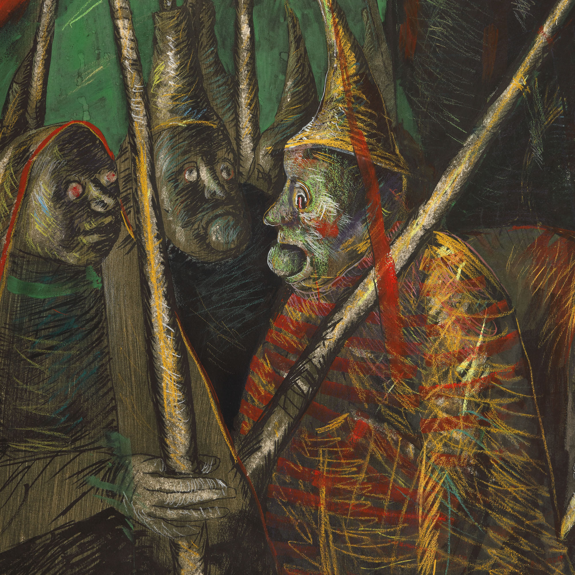 guașă și pastel pe hârtie