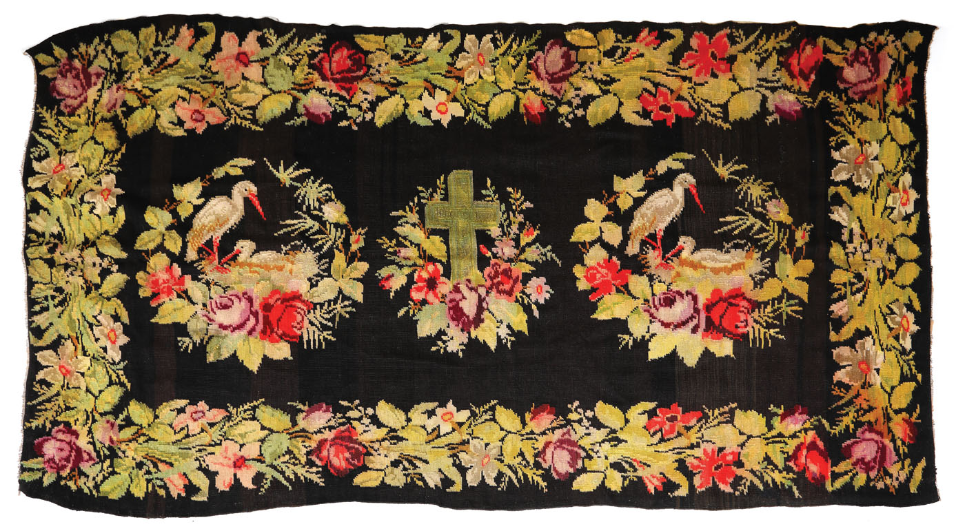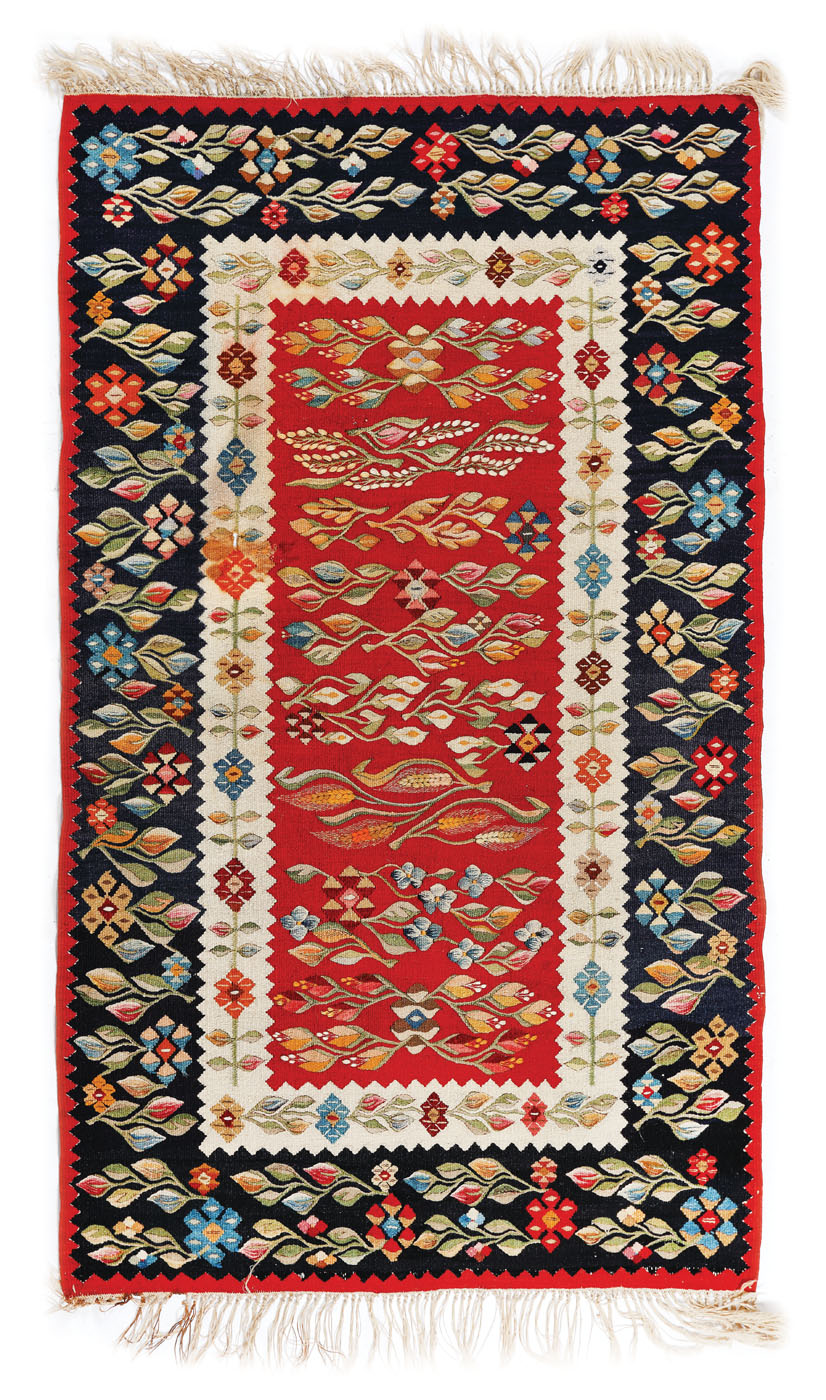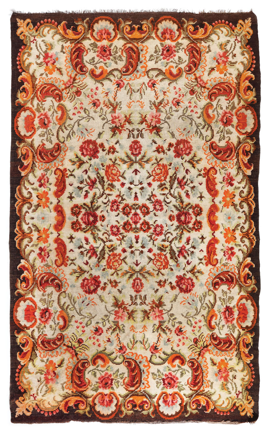 9. Covor muntenesc din lână, "boieresc", decorat cu motive florale, începutul sec. XX