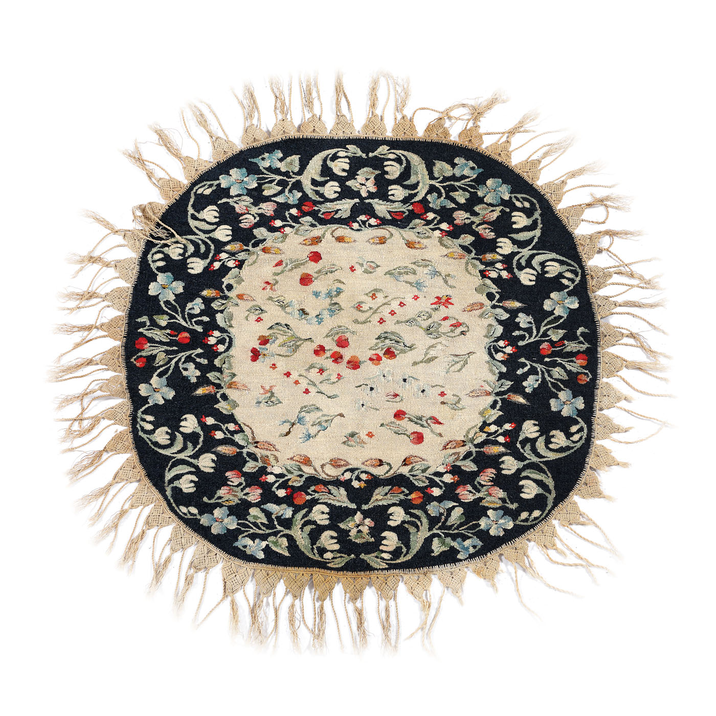16. Scoarță oltenească din lână, decorată cu motive floral-vegetale, perioada interbelică, cca. 1940