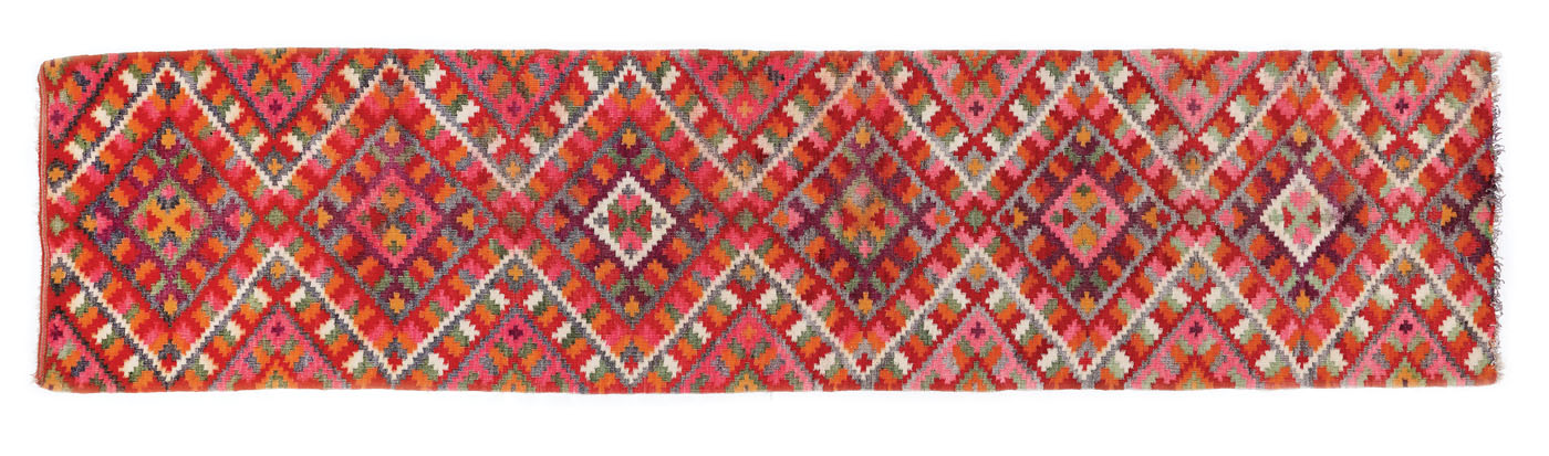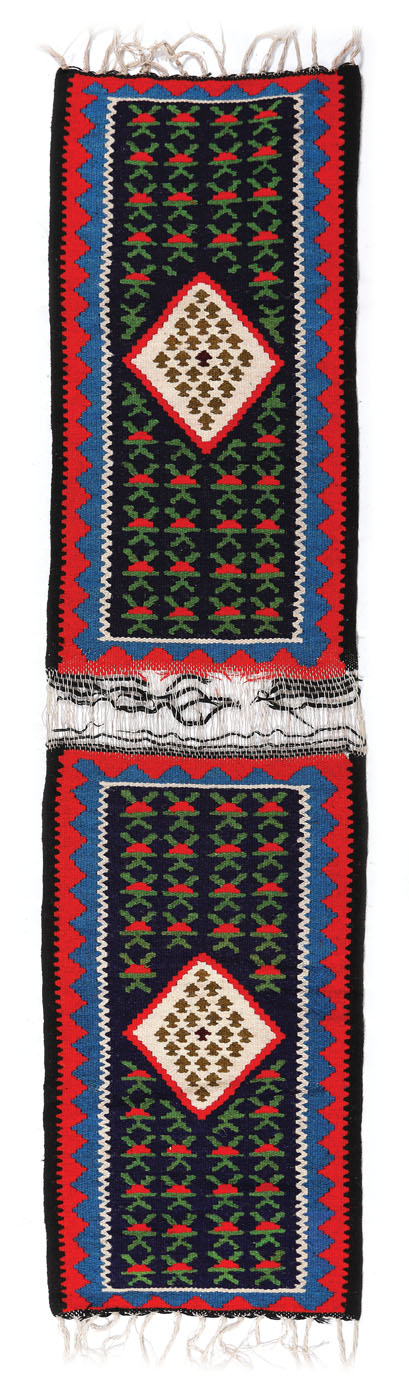 7. Covor maramureșan de rudă, din lână, decorat cu motive geometrice, începutul sec. XX