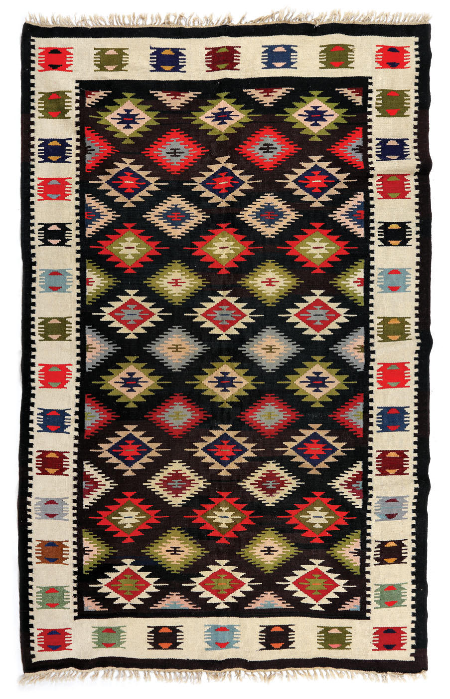10. Covor muntenesc, decorat cu romburi și pristolnice, mijlocul sec. XX