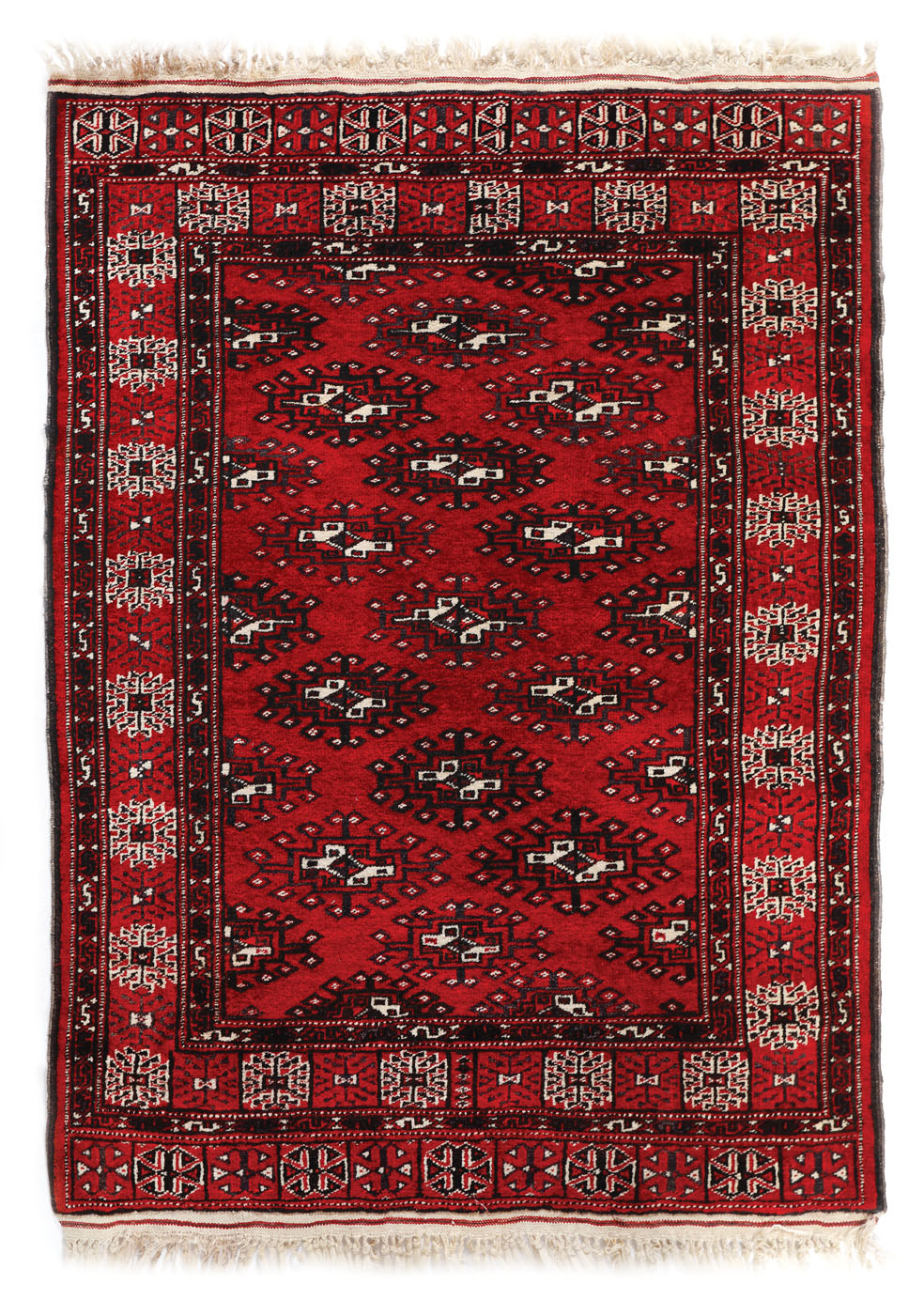 37. Covor Buhara-Yomut din lână. decorat cu motivul tarantulei și motivul ghearei de corb, a doua jumătate a sec. XX
