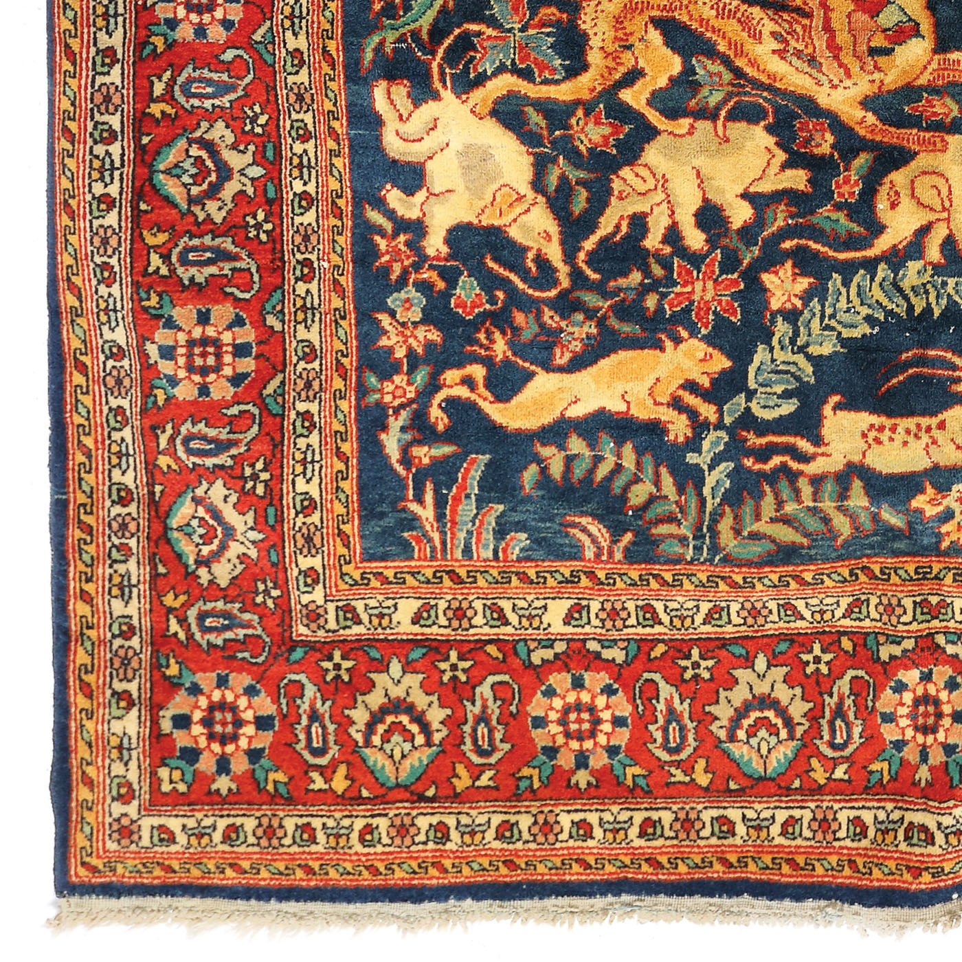 34. Covor Isfahan din lână, decorat cu scene de vânătoare în pădurea sălbatică, Iran, sec. XX