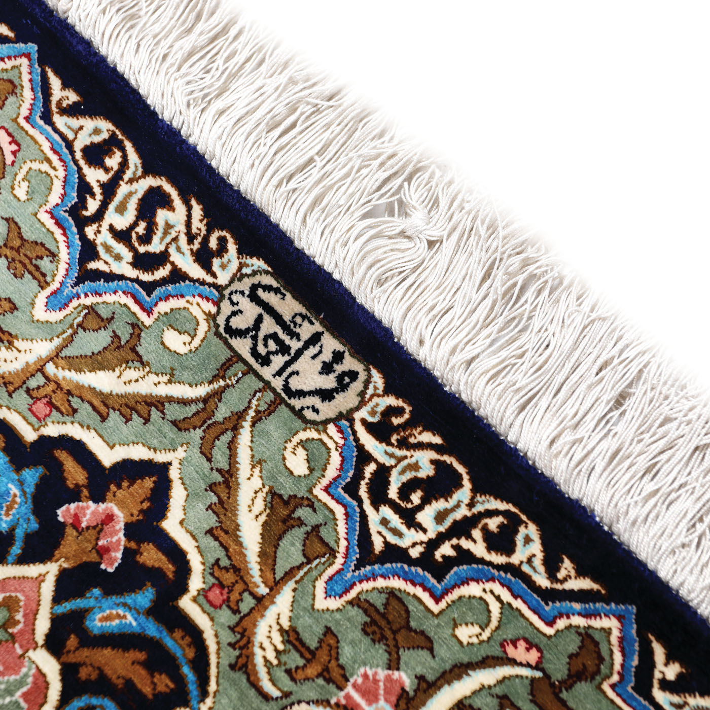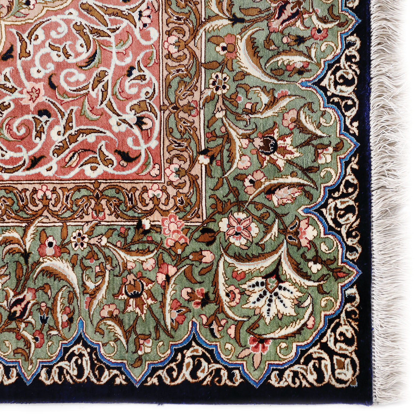 35. Covor Isfahan din mătase, decorat tradițional cu medalion și ghrilande de flori și palmete, Iran, a doua jumătate a sec. XX
