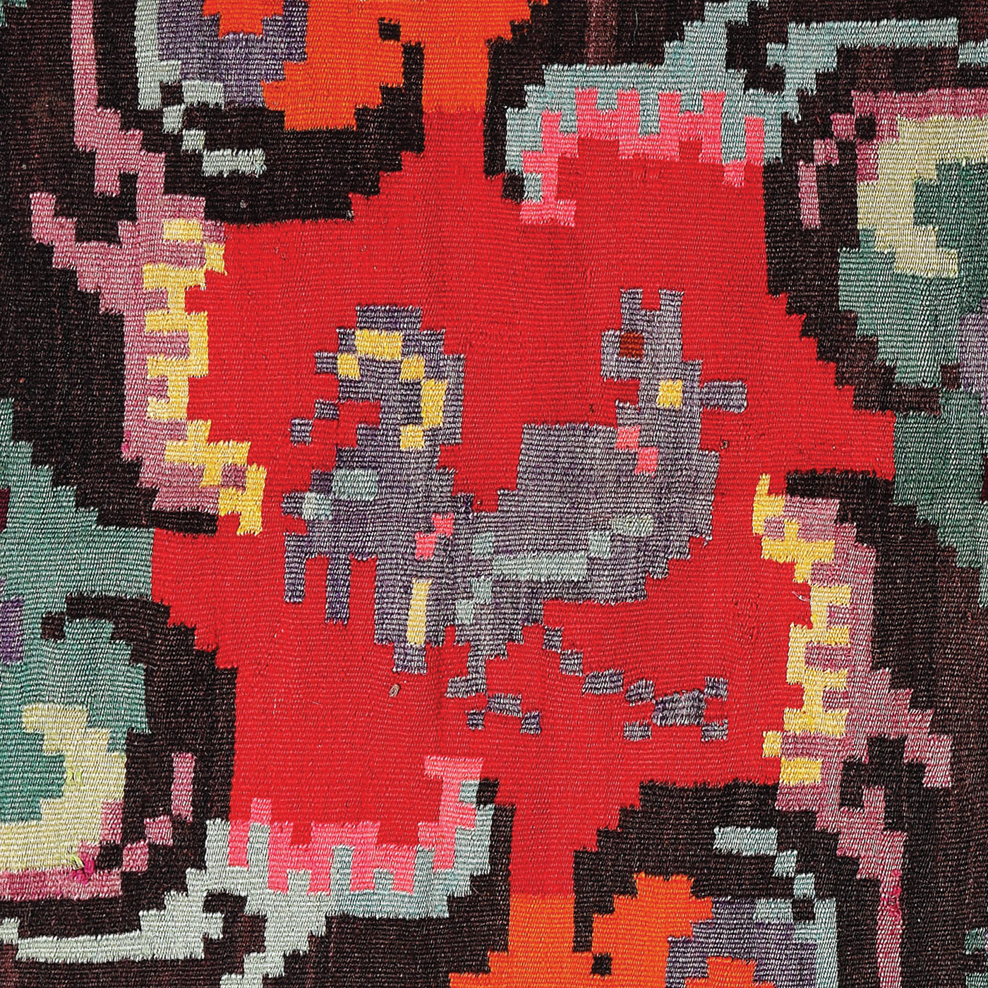 5. Covor tradițional moldovenesc, din lână, parietal, decorat cu doi cocoși și motive geometrice, prima jumătate a sec. XX
