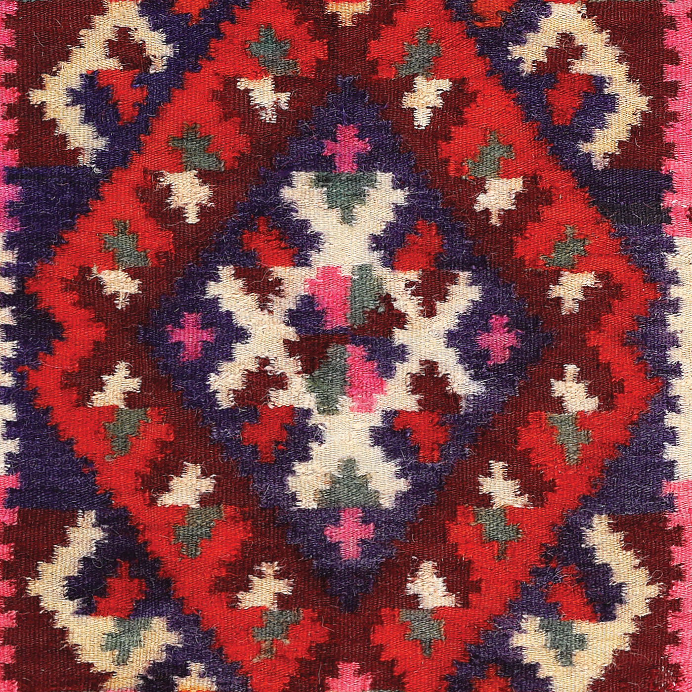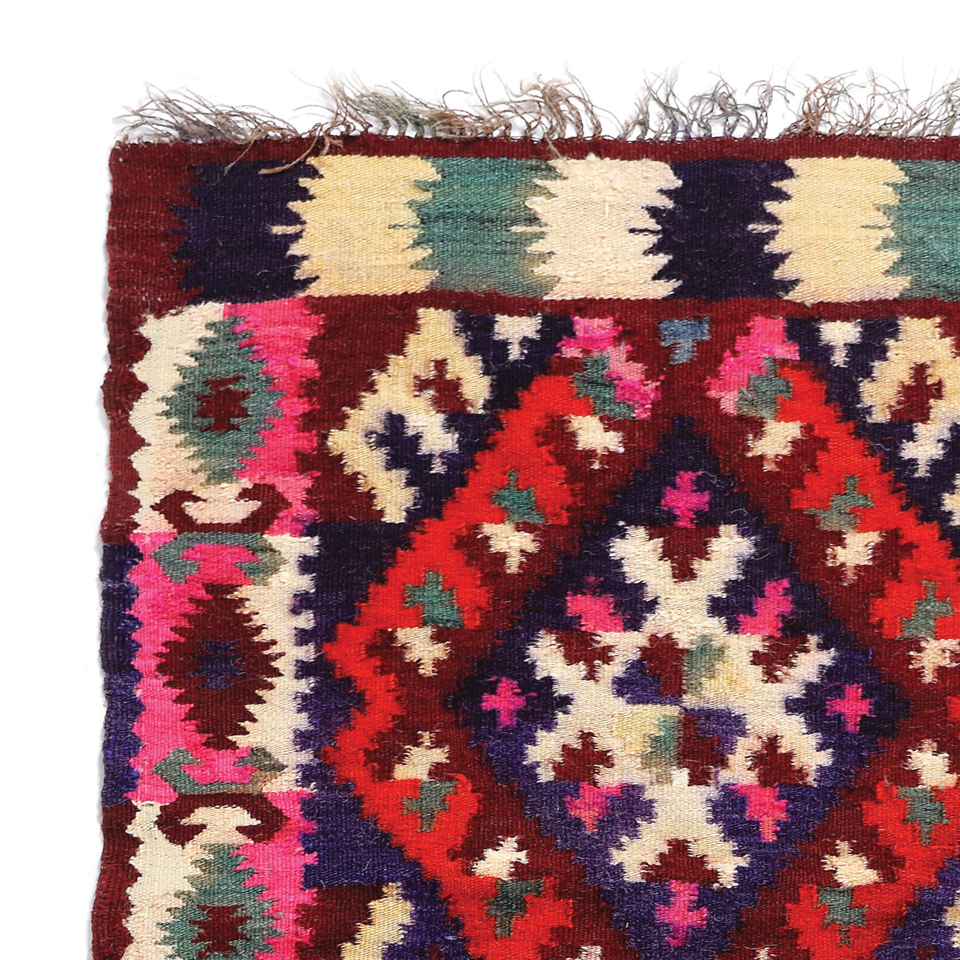 Piesă tipică pentru amenajarea decorativă a interiorului caselor maramureșene din lemn, fiind realizat în integralitate manual, în cadrul gospodăriei țărănești. Confecționat din urzeală din păr de lână țurcană, băteală din lână, ambele prelucrate în gospodărie. Coloranti chimici și vegetali. Țesut manual, cu urzeală ascunsă, motive alese ”scoțește” cu ”găurele” (termenul local fiind ”ciurătură”). Piesa are o formă dreptunghiulară, compoziție decorativă închisă cu chenar și câmp central divizat în patru casete. Prezintă motive geometrice bogate: “roate”, romburi cu chenar și cruci, coarnele berbecului și unda apei. Cromatica: fond brun, motive cu alb verde, roșu, roz, alb, brun, cărămiziu, ciclam și galben pai. Starea de conservare este foarte bună.