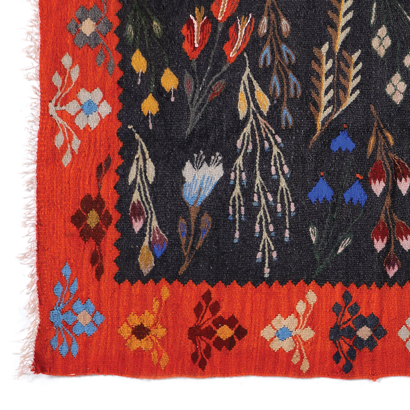 16. Scoarță oltenească din lână, decorată cu motive floral-vegetale, perioada interbelică, cca. 1940
