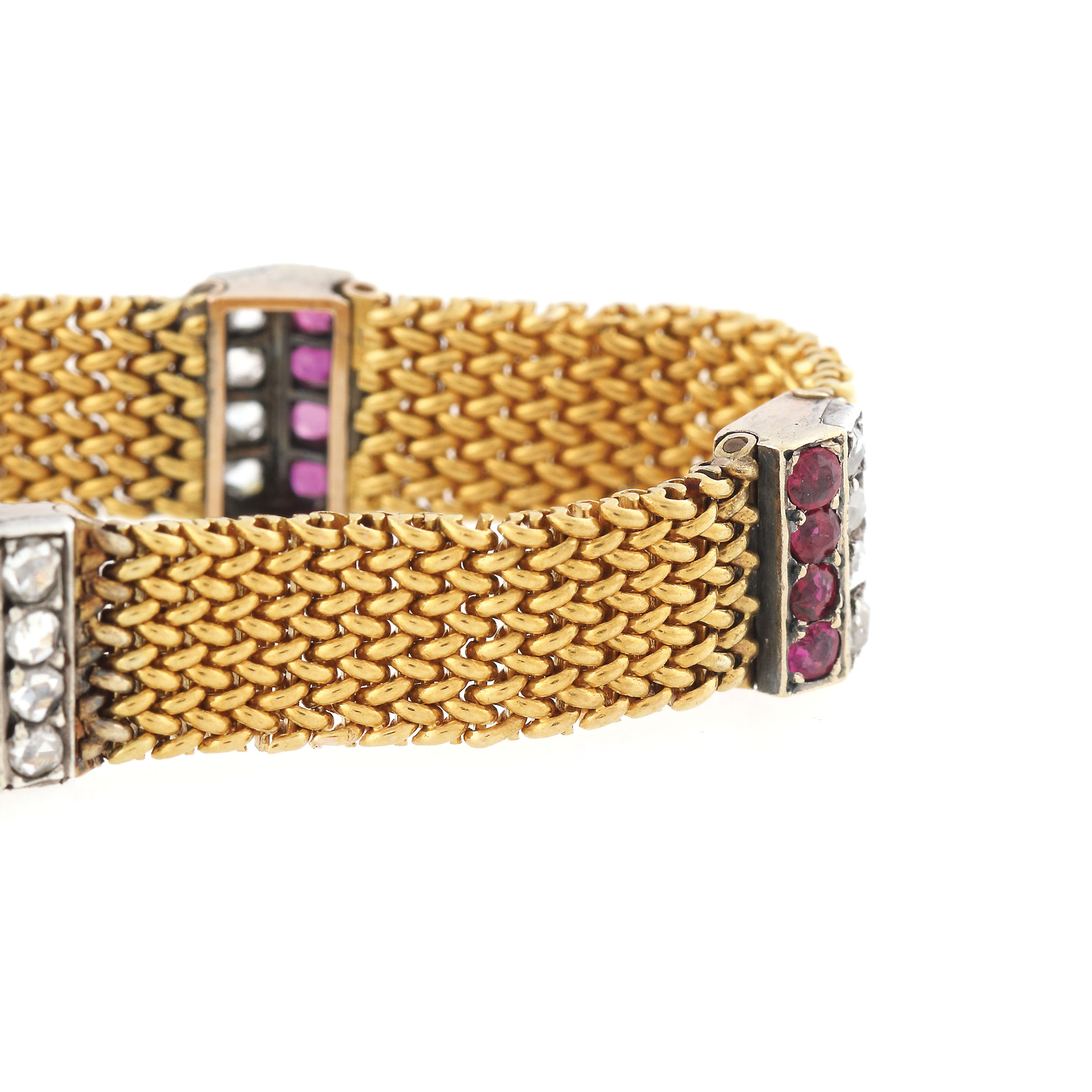 24 round faceted rubies, red color, eye-clean clarity, approx. 1.00 ct. and 24 rose cut diamonds, J-K color, SI clarity, approx. 0.24 ct.